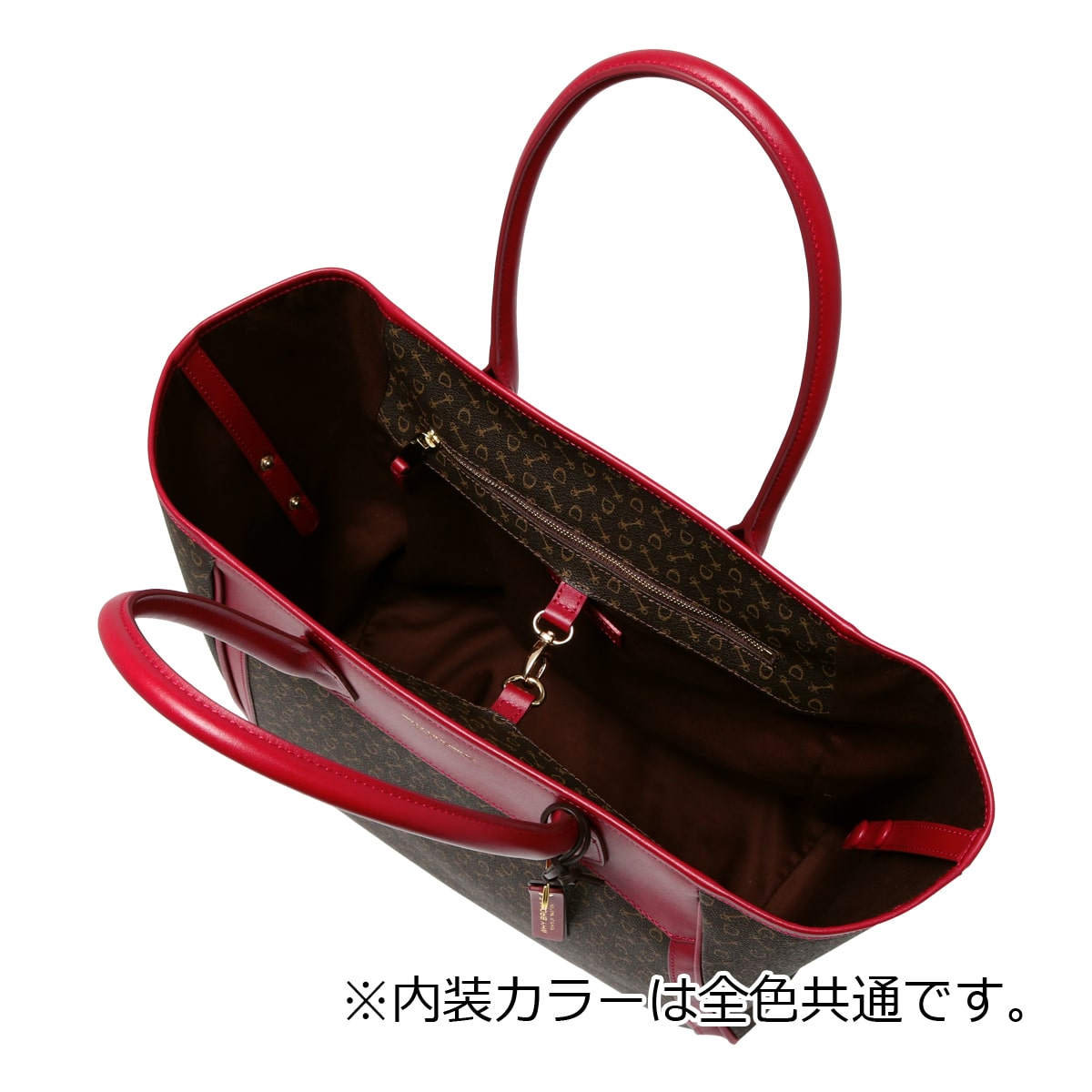 大き目サイズのモダントートバッグは、装いの主役になれる存在感。お仕事バッグやショートトリップまで使えるサイズ感です。中のホックを留めることで、マチを内側に折り畳んでフォルムを変えて使うことができます。