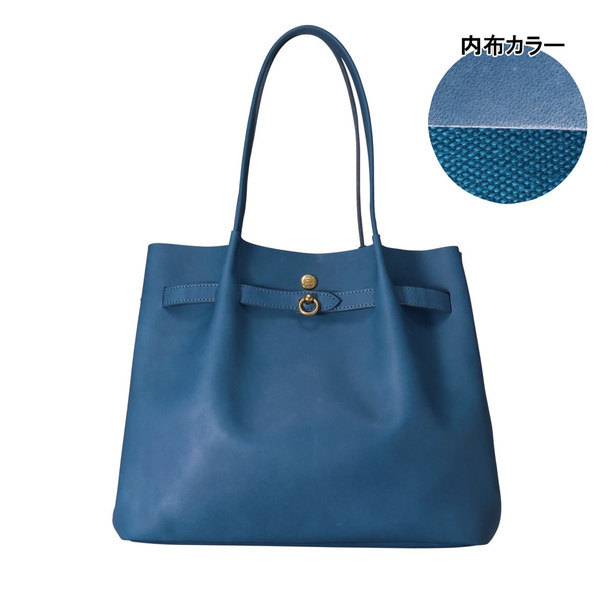 トートバッグは、持ち手を本体で挟むように取り付けられているため、自然とドレープが生まれ上品なシルエットになります