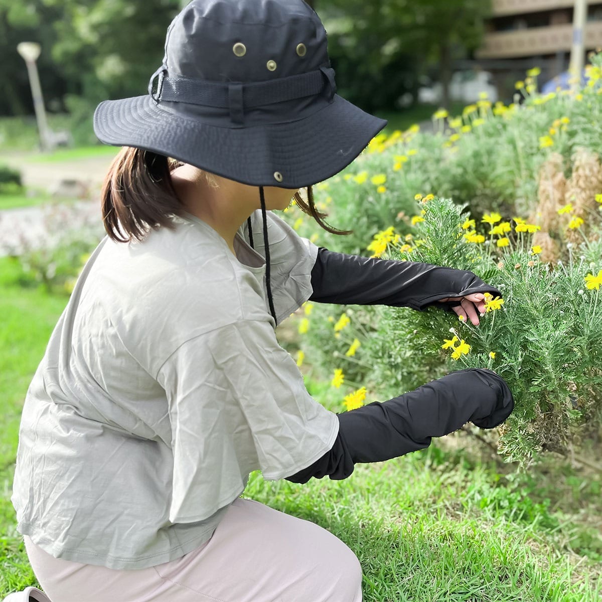 指先までしっかりカバーできる冷感アームカバーです。