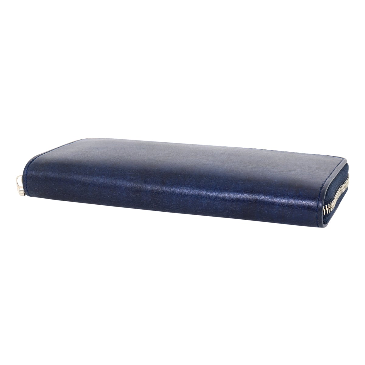 日本有数の革産地である兵庫県姫路市で完成までに5年を費やし、仕上げられた藍染めレザー。使い込む程により艶が増していきます。内装の白ヌメレザーはイタリア製のヌメ革を使用。オイルをしっかり含み、使い込む程に飴色に変化していきます。シンプルイズベストなデザインでシーンを選ばず幅広く活躍する長財布です。