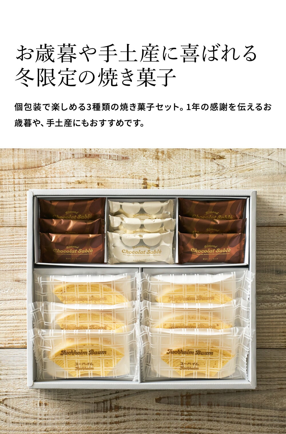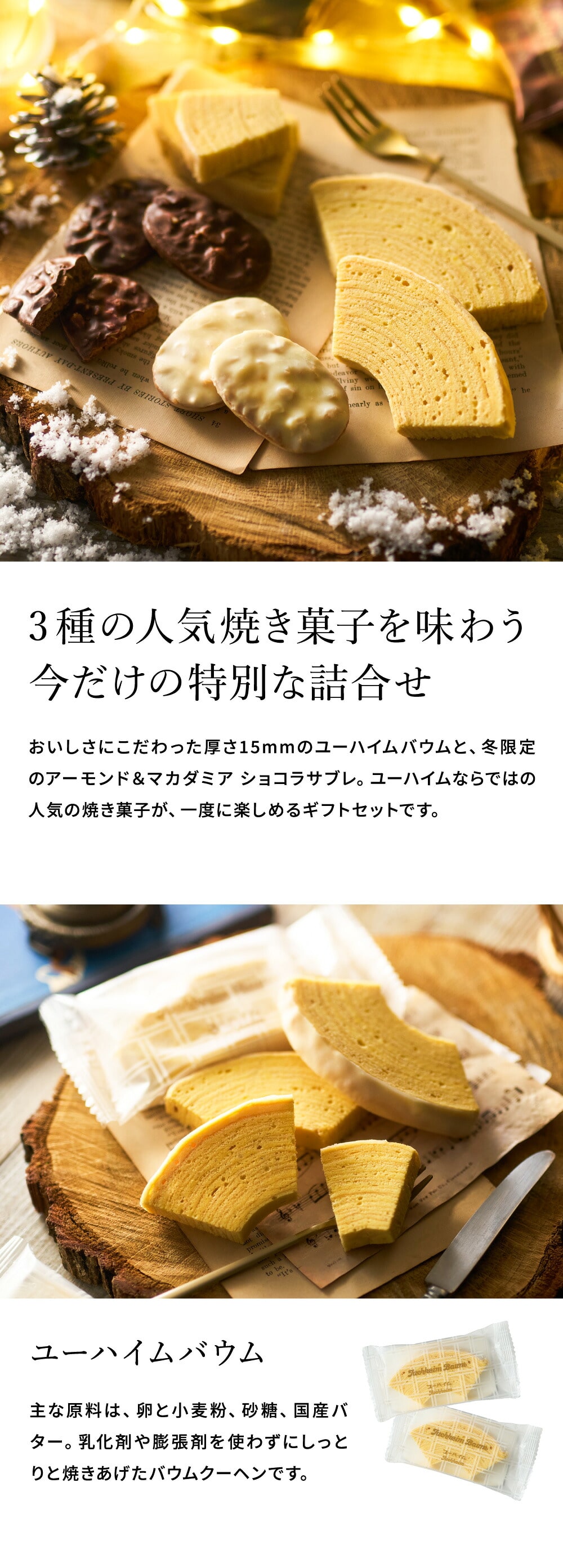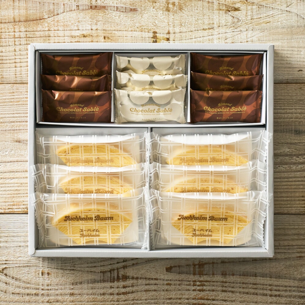●内容量:ユーハイムバウム×6、ショコラサブレ(アーモンド)×6、ショコラサブレ(マカダミアナッツ)×3