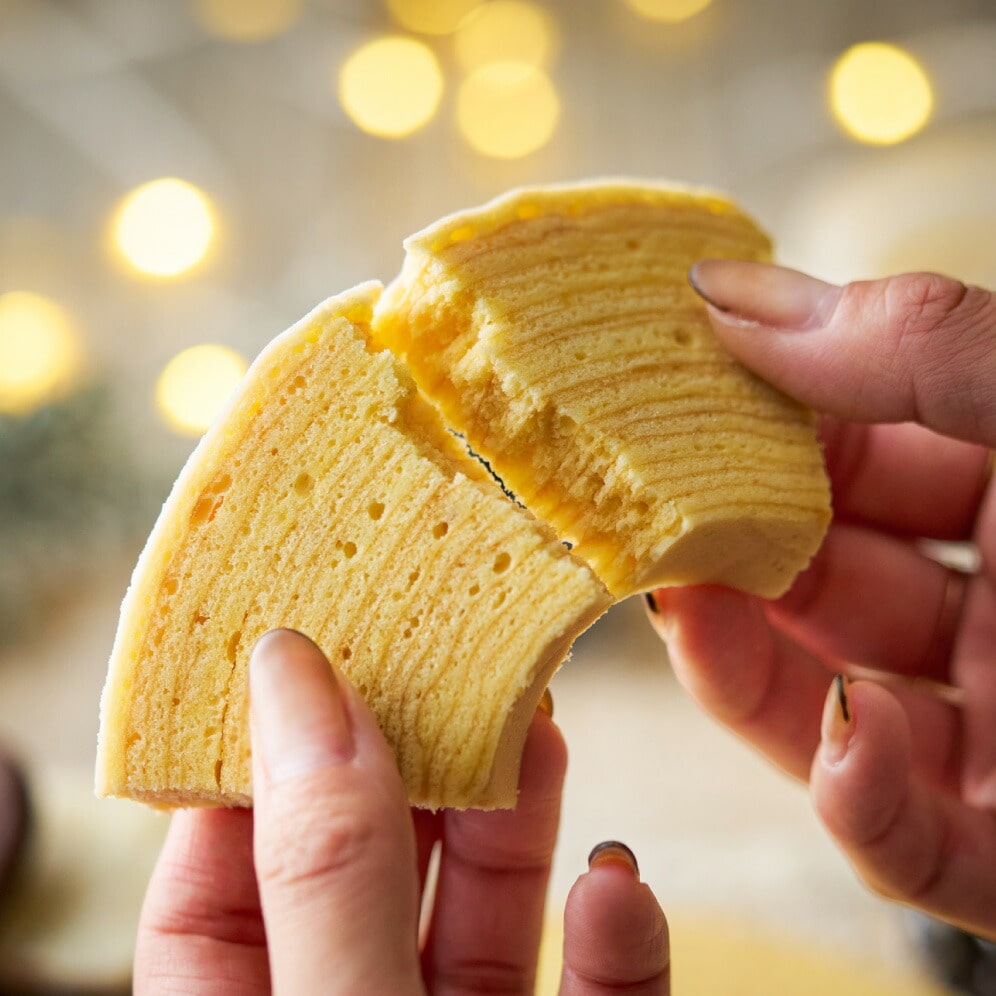 ●原材料:〔ユーハイムバウム〕砂糖(国内製造)、液卵白(卵を含む)、バター、液卵黄、小麦澱粉、小麦粉、ホワイトチョコレートコーチング(大豆を含む)、アーモンドパウダー、液糖、食塩、レモン果汁、バニラビーンズ