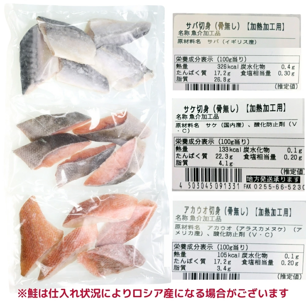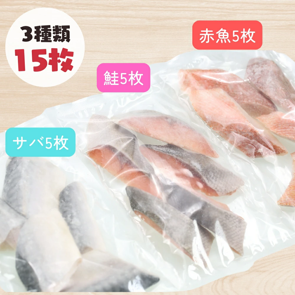 【骨なし・無塩】切り身セット 鮭・赤魚・サバ 各5枚×3(計15枚)
