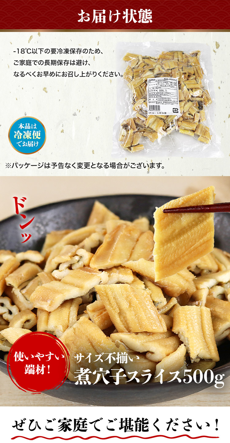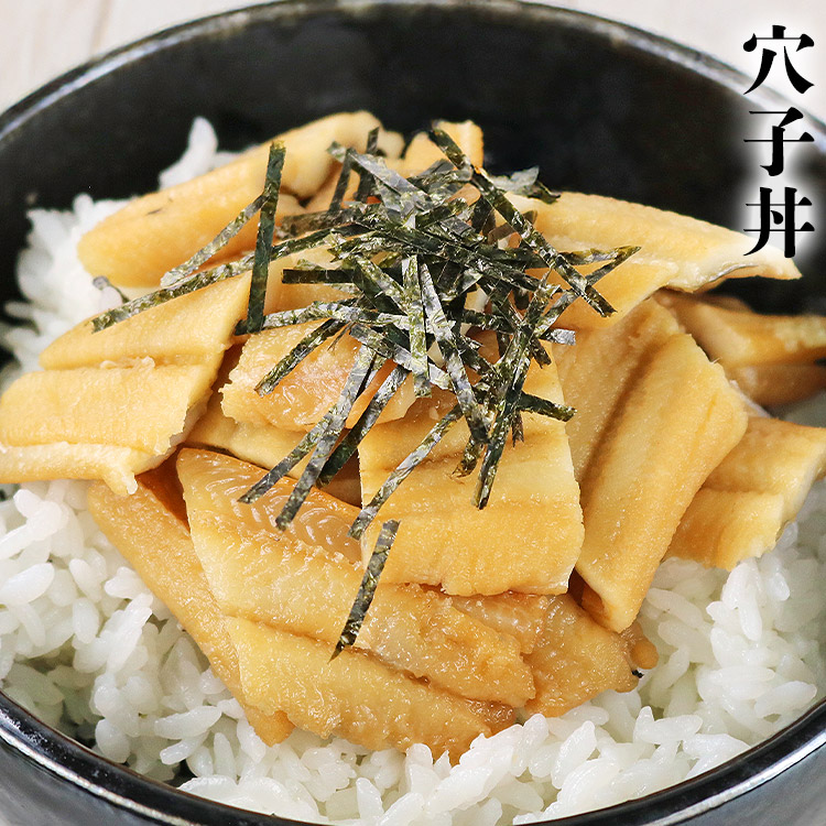 真穴子(中国産)、砂糖、醤油、酒、みりん、昆布、生姜、食塩、(一部に小麦・大豆を含む)