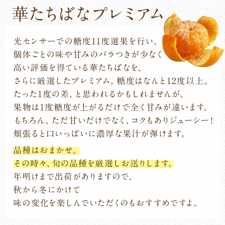 高い評価を得ている華たちばなを、さらに厳選した“プレミアム華たちばな”。