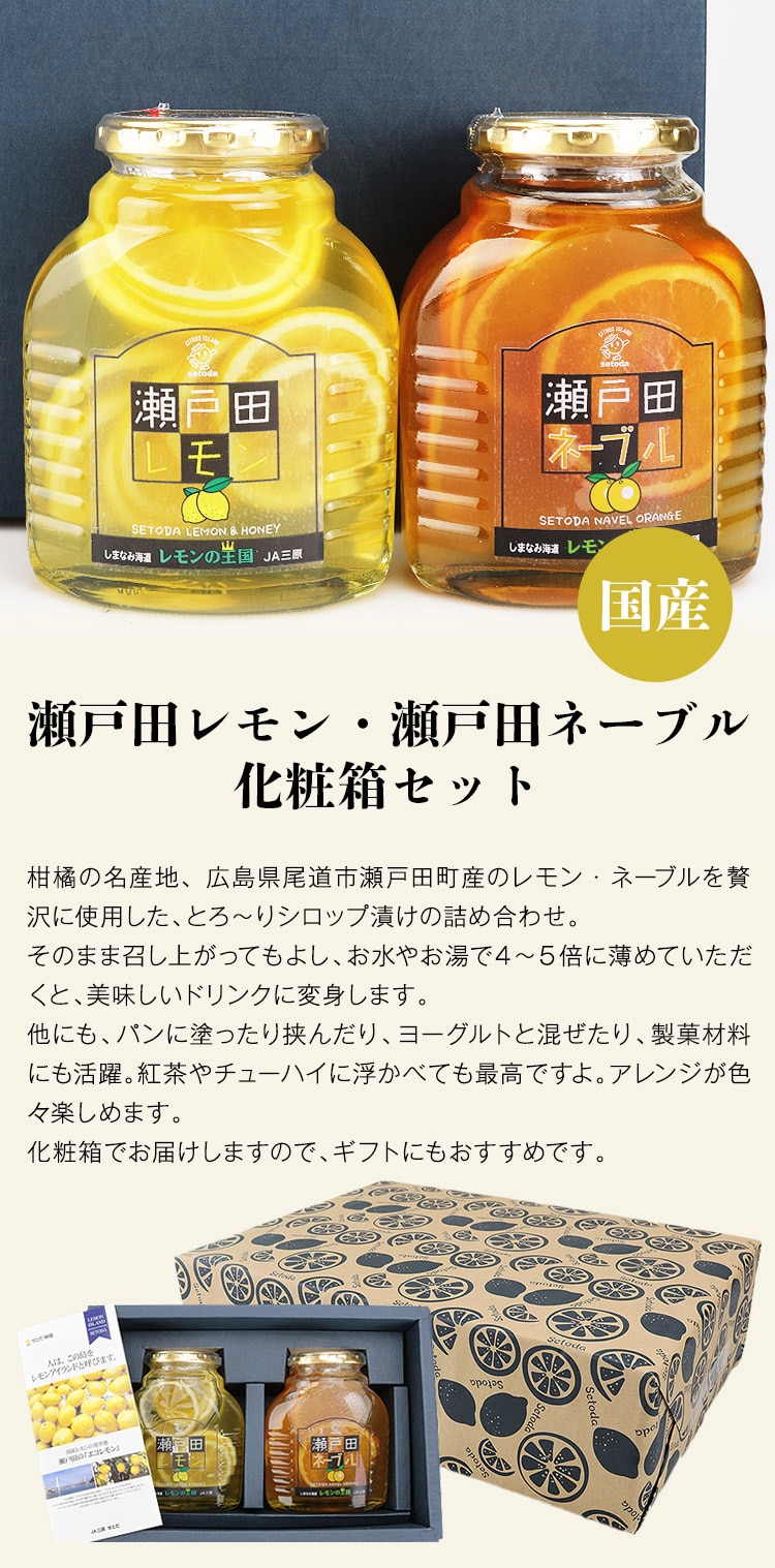 柑橘の名産地、広島県尾道市瀬戸田町産のレモン・ネーブルを贅沢に使用した、