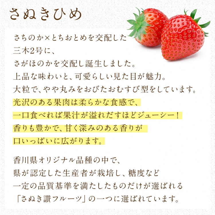 香川県推奨のさぬき讃フルーツに選ばれているブランドいちご、さぬきひめ。