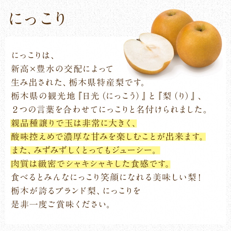 にっこりは、新高×豊水の交配によって生まれた栃木特産梨です。