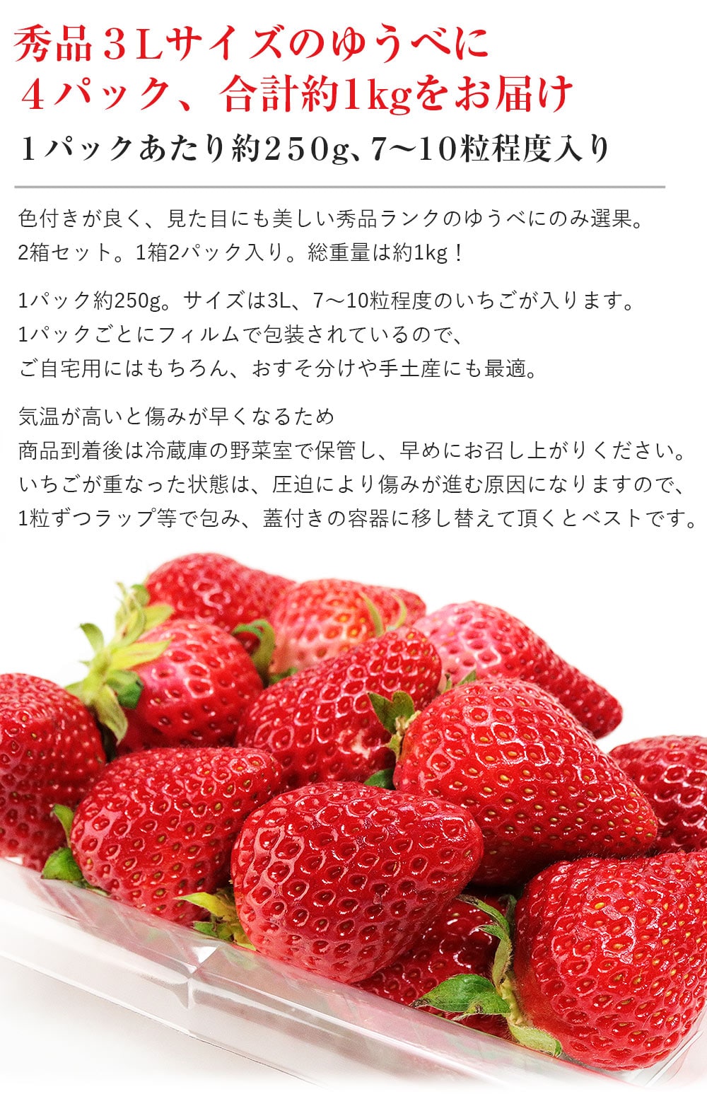 〇秀品3Lサイズのゆうべに、4パック合計約1kgをお届け
