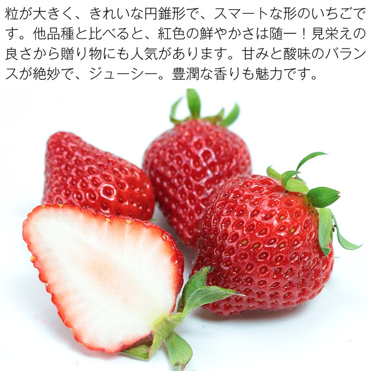 粒が大きく、きれいな円錐形をしたスマートな形のいちごです。