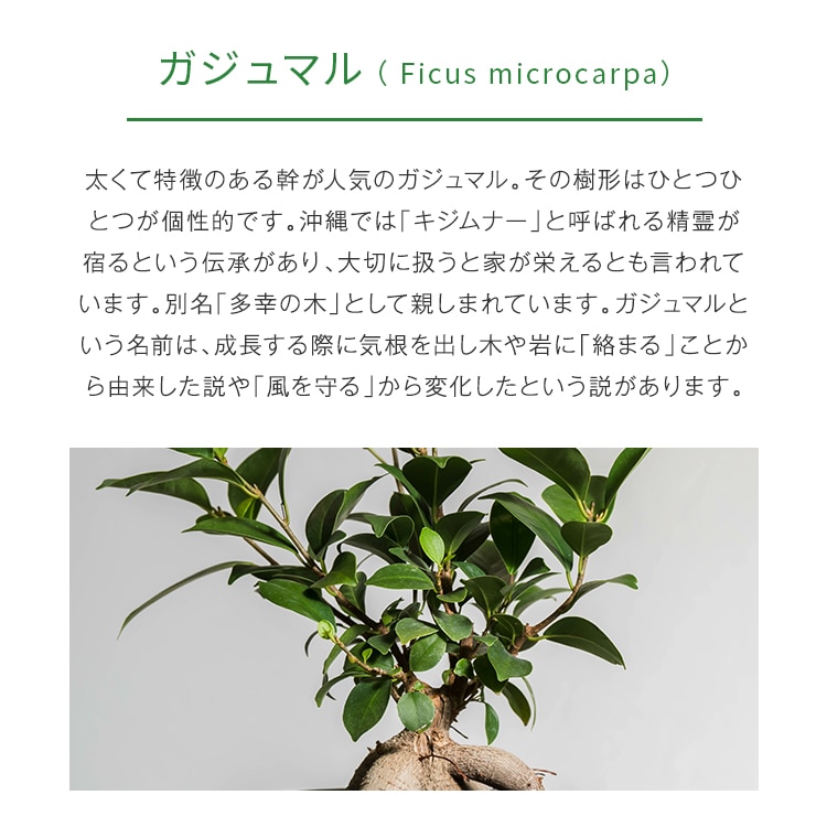 太くて特徴のある幹が人気のガジュマル。