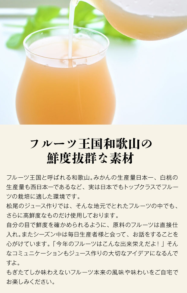 果肉を丸ごと絞り、糖度は約11.5度~13度のものをブレンド。