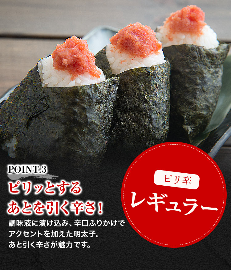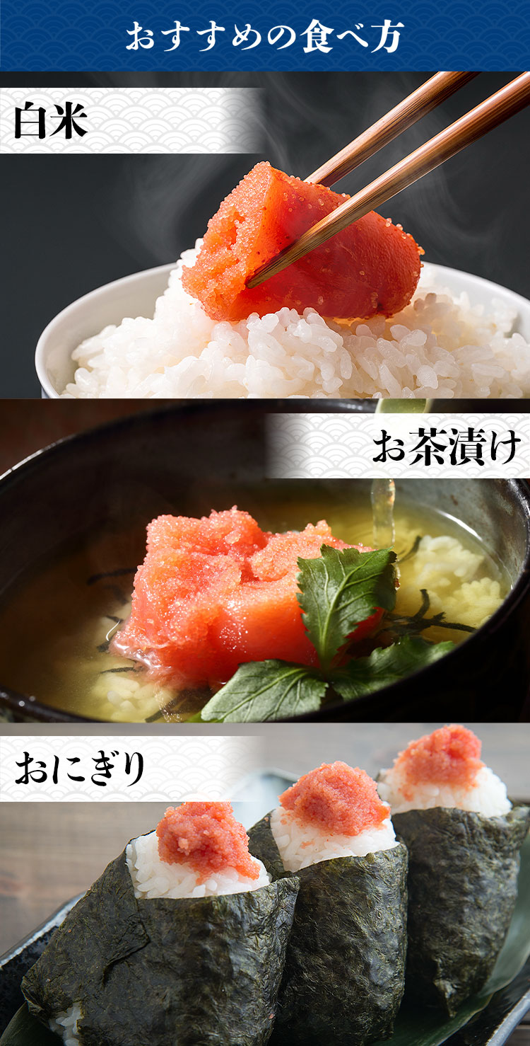 すけとうだらの卵巣(ロシア又は米国)、食塩、発酵調味料、果糖ブドウ糖液糖、魚介エキス、唐辛子、醤油(小麦・大豆を含む)/調味料(アミノ酸等)、酒精、甘味料(ソルビット)、酸化防止剤(V.C)、ナイアシン、pH調整剤、酵素、発色剤(亜硝酸Na)