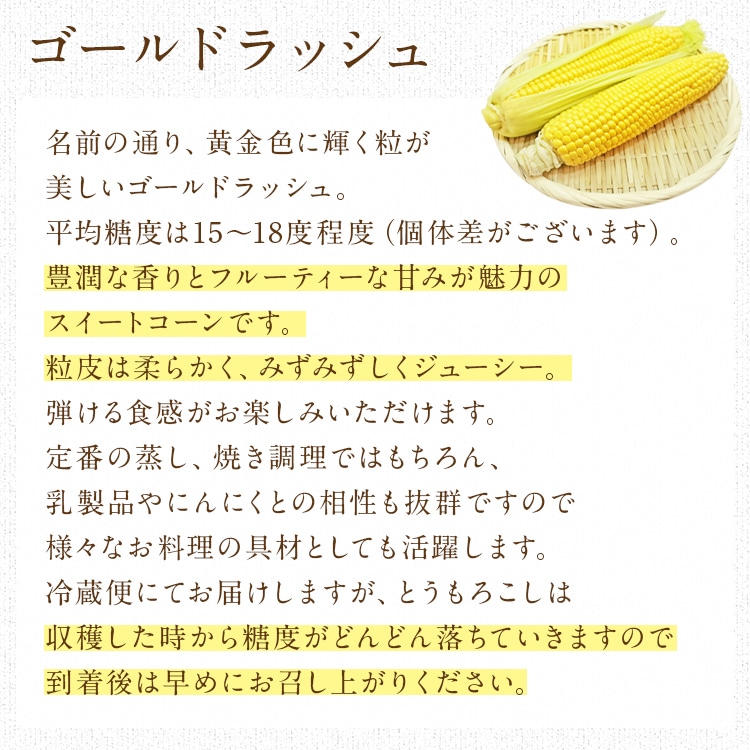豊潤な香りとフルーティーな甘みが魅力のスイートコーンです。