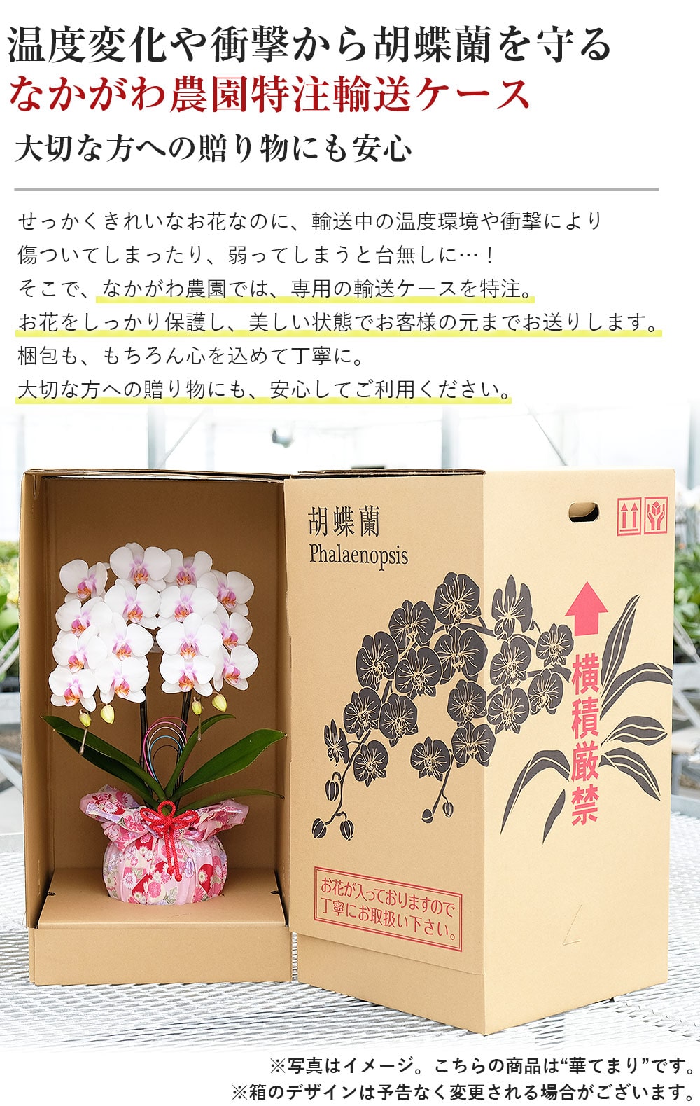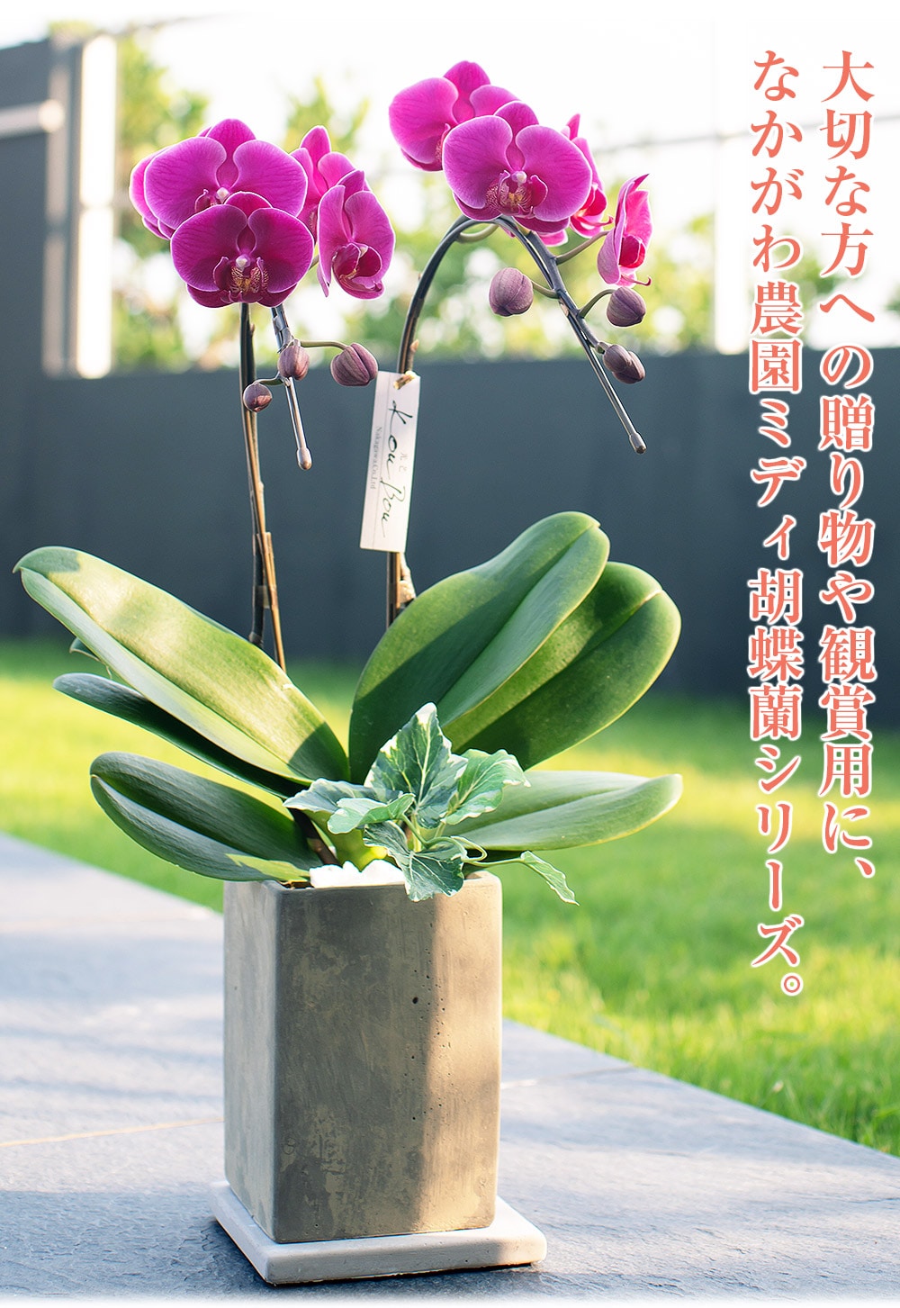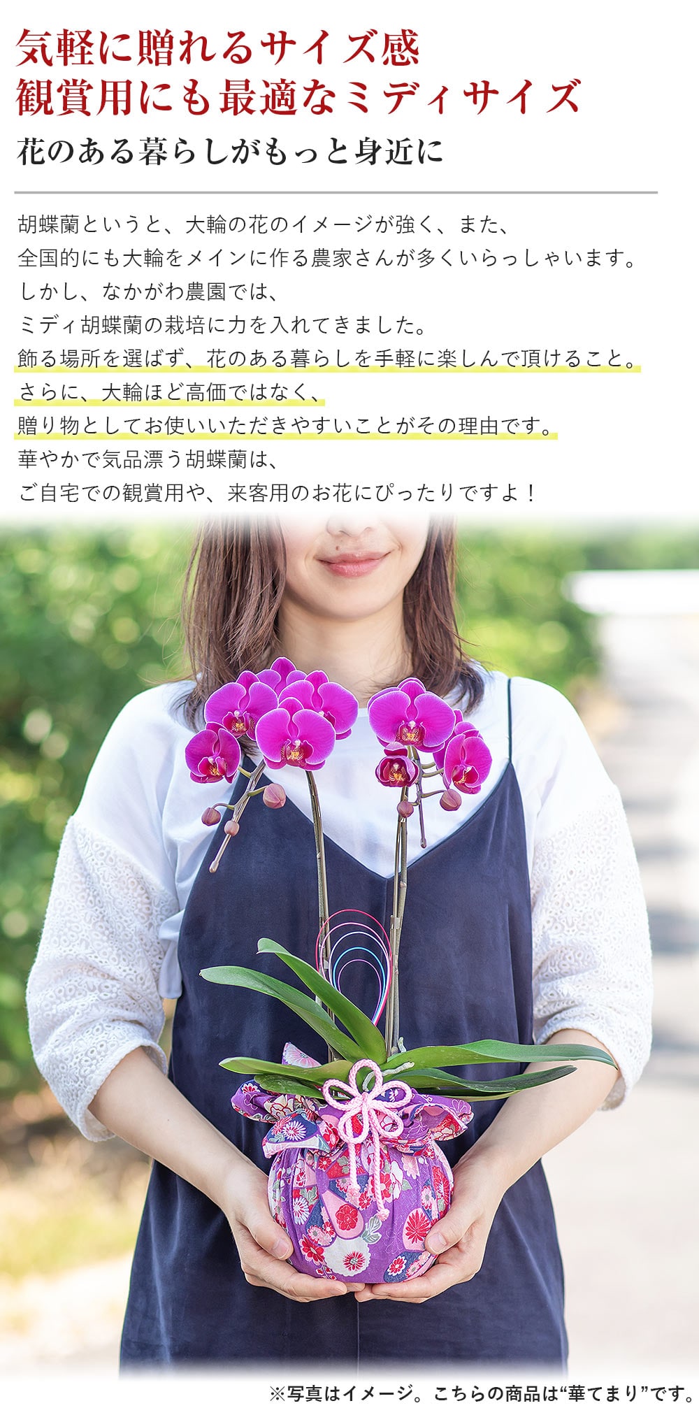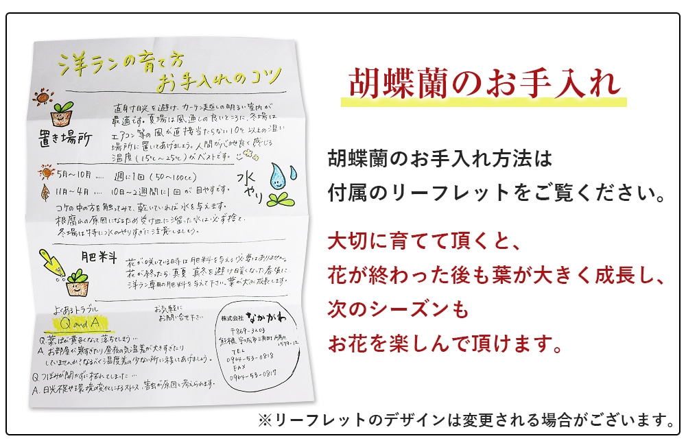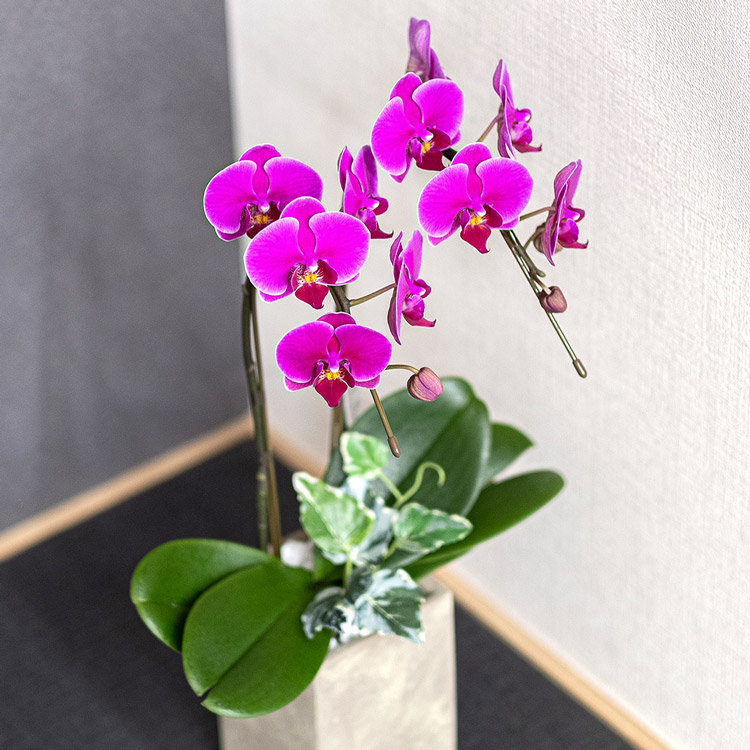 セット内容:ミディ胡蝶蘭、鉢、リーフレット※鉢と同色の台座が付属します。