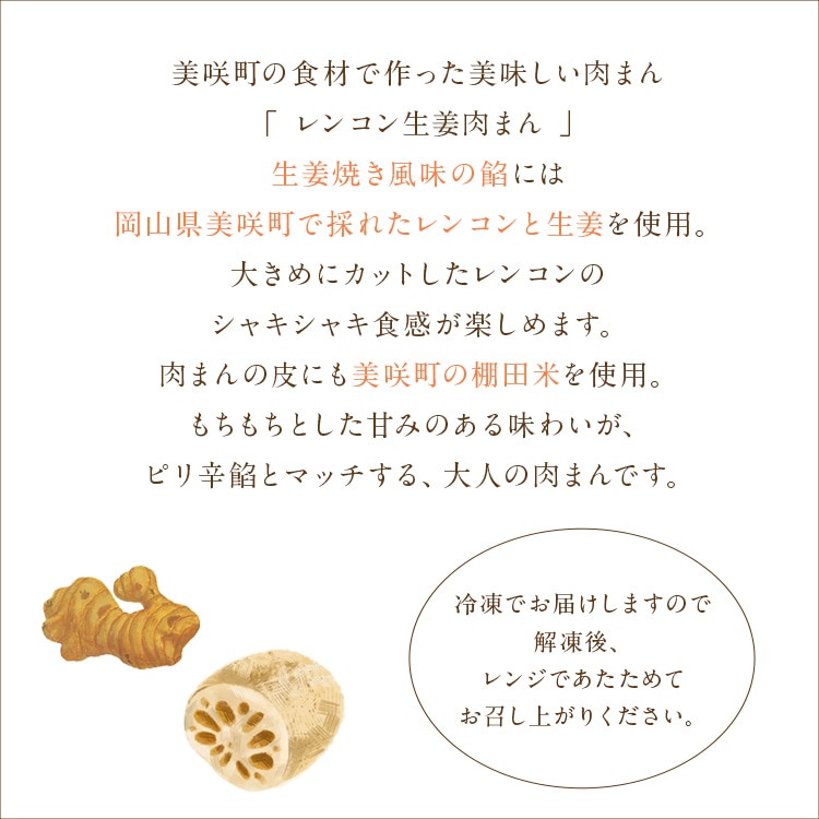 生姜焼き風味の餡には岡山県美咲町で採れたレンコンと生姜を使用。