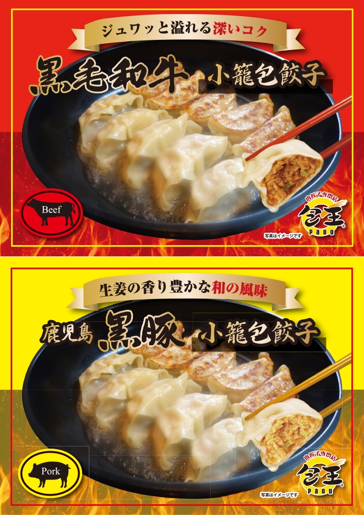 黒毛和牛小籠包餃子と、黒豚小籠包餃子。