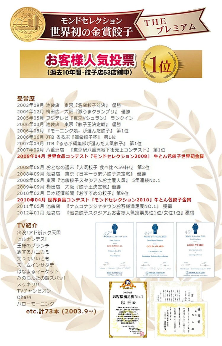 「東京・名店餃子対決」で優勝し、