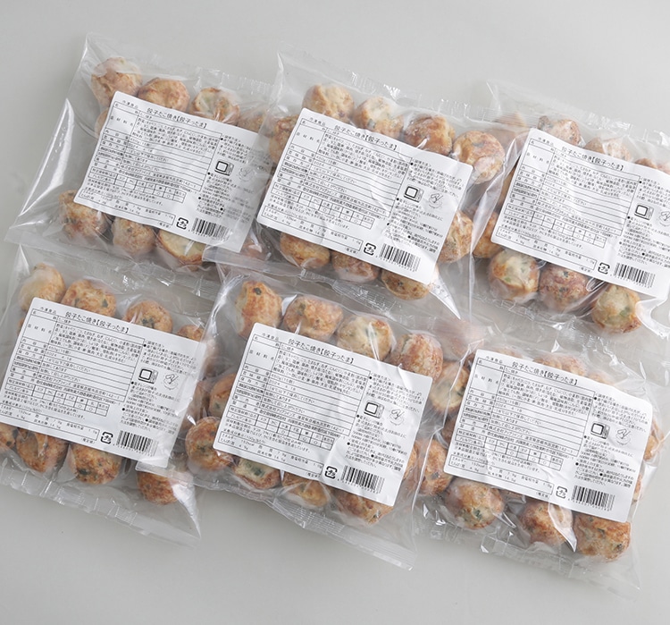 【原材料名】野菜(キャベツ、ニラ、たまねぎ、ねぎ、にんにく)、小麦粉(国内製造)、タコ、鶏卵、豚肉、焼き油(なたね)、植物油脂、生姜塩漬け、風味調味料(かつお)、しょうゆ、風味調味料(こんぶ)、砂糖/加工でん粉、調味料(アミノ酸等)、増粘剤(キサンタンガム)、酸味料、(一部に小麦・卵・豚肉・大豆・乳成分を含む)