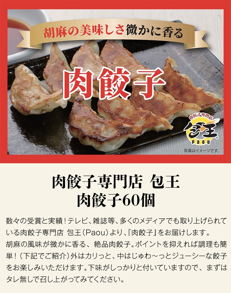 肉餃子専門店 包王(Paou)より、『肉餃子』をお届けします。