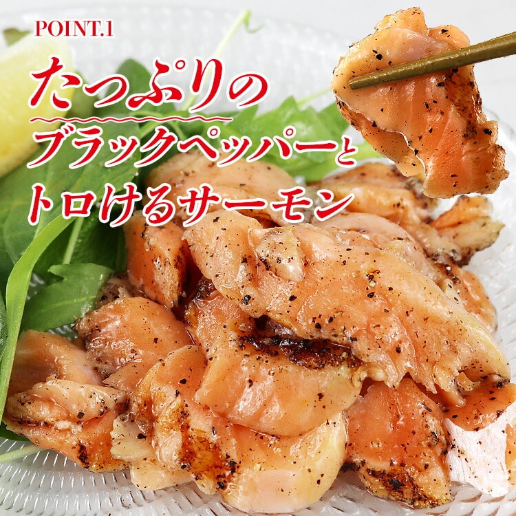 サーモントラウト(チリ又はトルコ又はその他)、ブラックペッパー/調味料(アミノ酸等)、(一部にさけ・大豆を含む)
