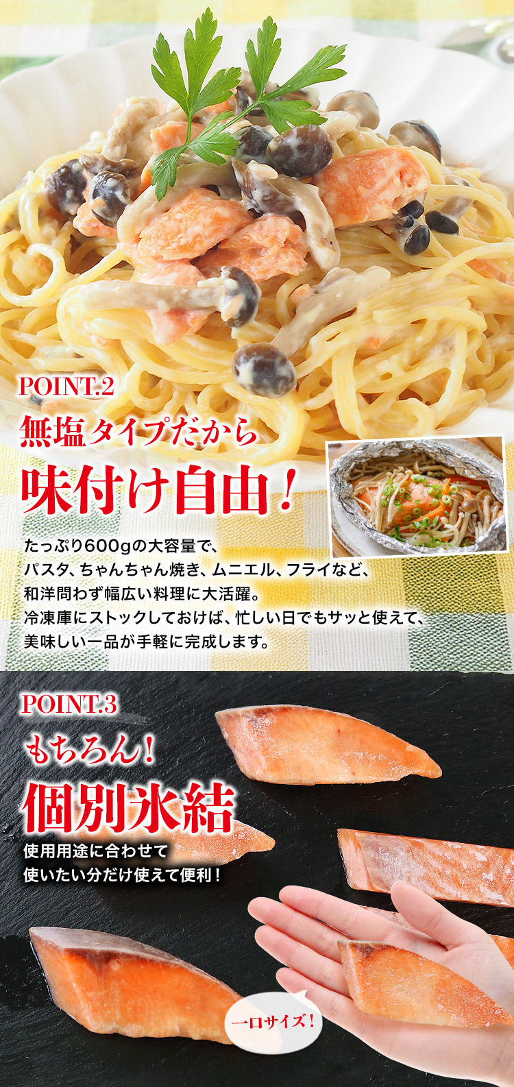 パスタ、ちゃんちゃん焼き、ムニエル、フライなど、