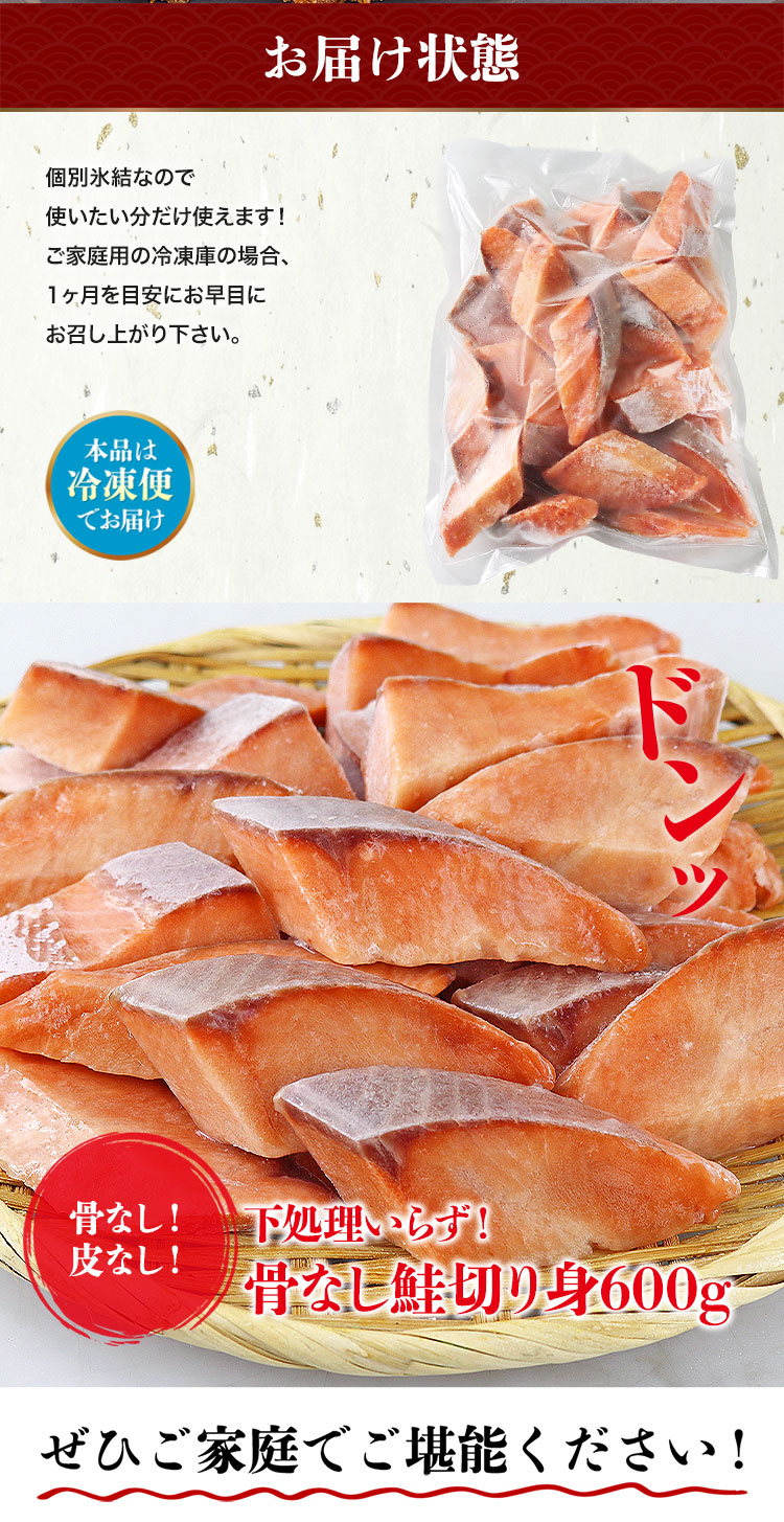 皮と骨を丁寧に取り除き、一口サイズの切り身に仕上げました。