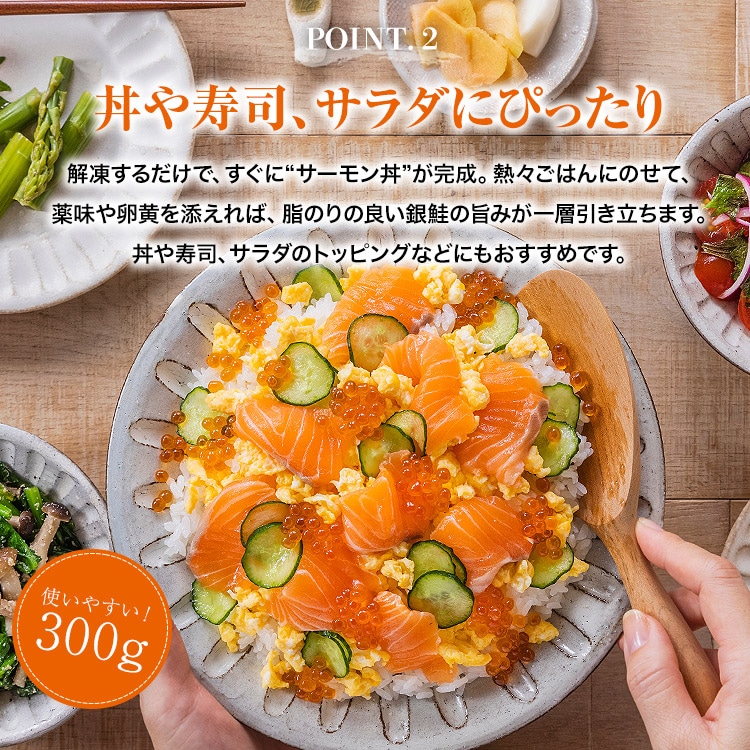 解凍するだけで、すぐに“サーモン丼”が完成。