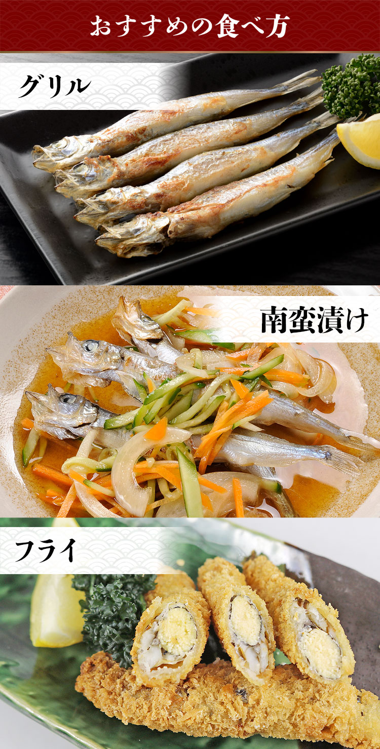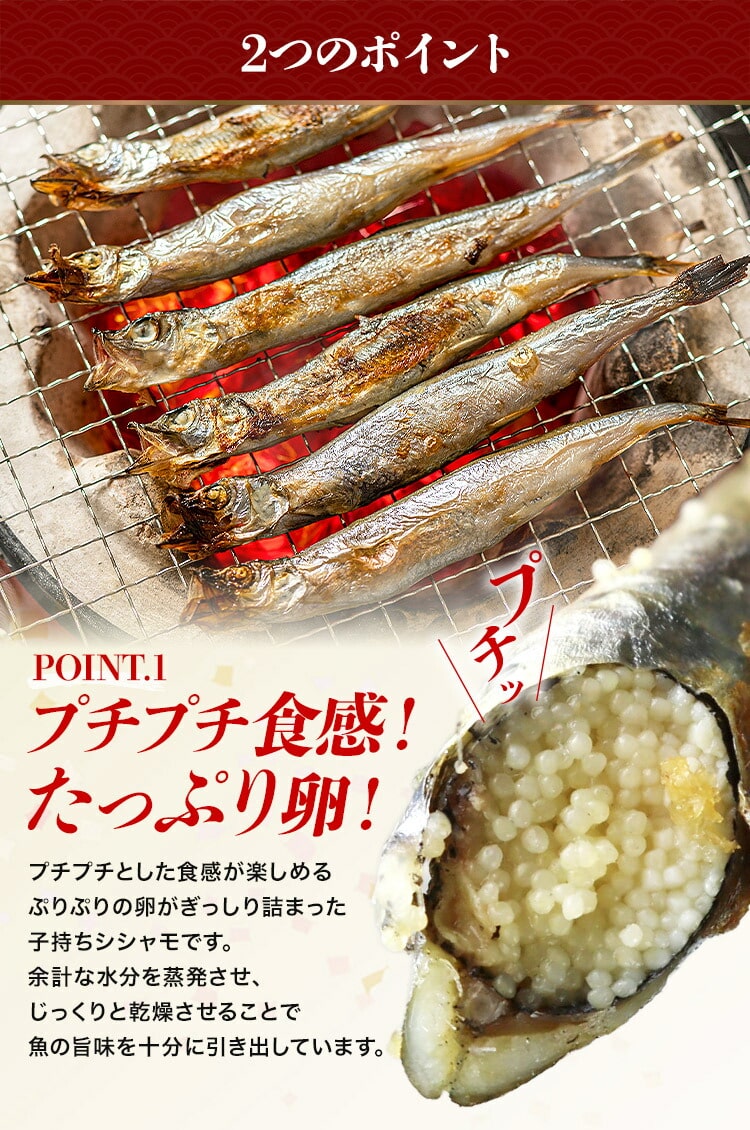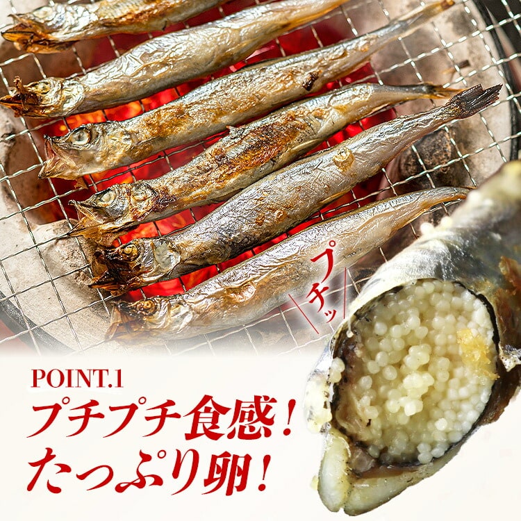 ぷりぷりの卵がぎっしり詰まった子持ちシシャモです。