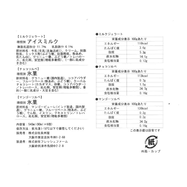 氷菓の為、賞味期限の記載なし※冷凍庫で保存してください。