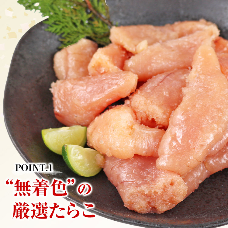 厳選された原料を使用した「無着色たらこ」。