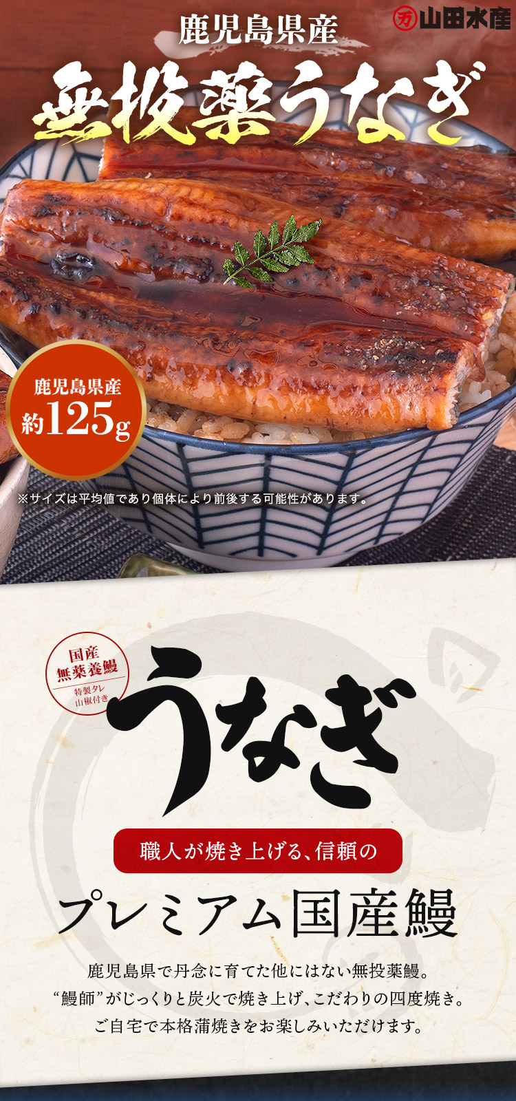 うなぎ(鹿児島県)、しょうゆ(大豆・小麦を含む)、砂糖、みりん、水あめ、発酵調味料