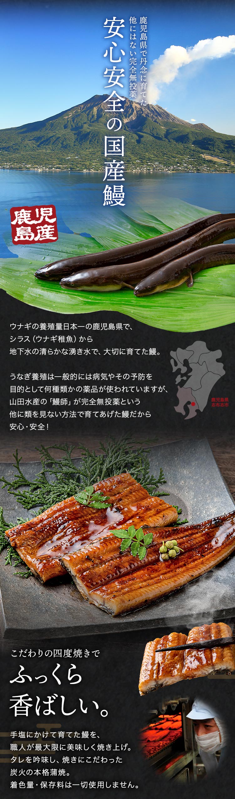 山田水産の「鰻師」が完全無投薬という