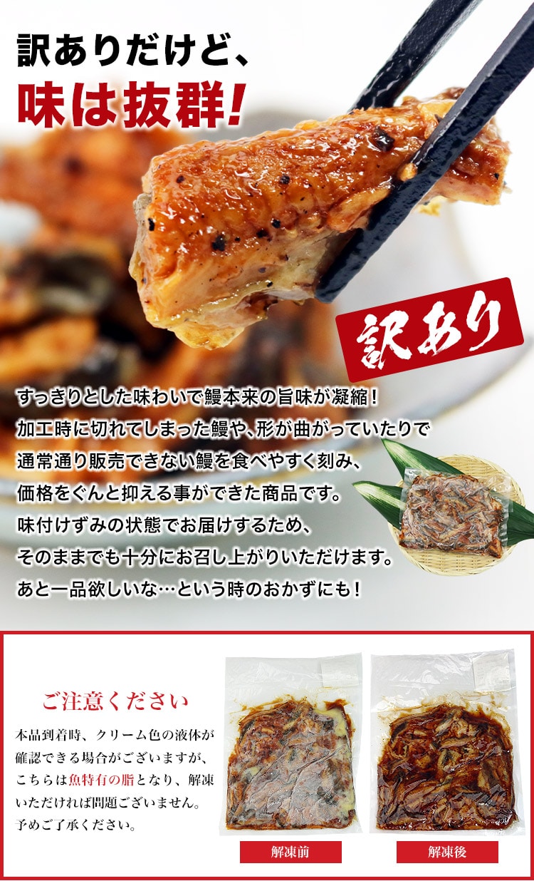 刻みは、加工時に切れてしまった鰻や形が曲がっていたりの