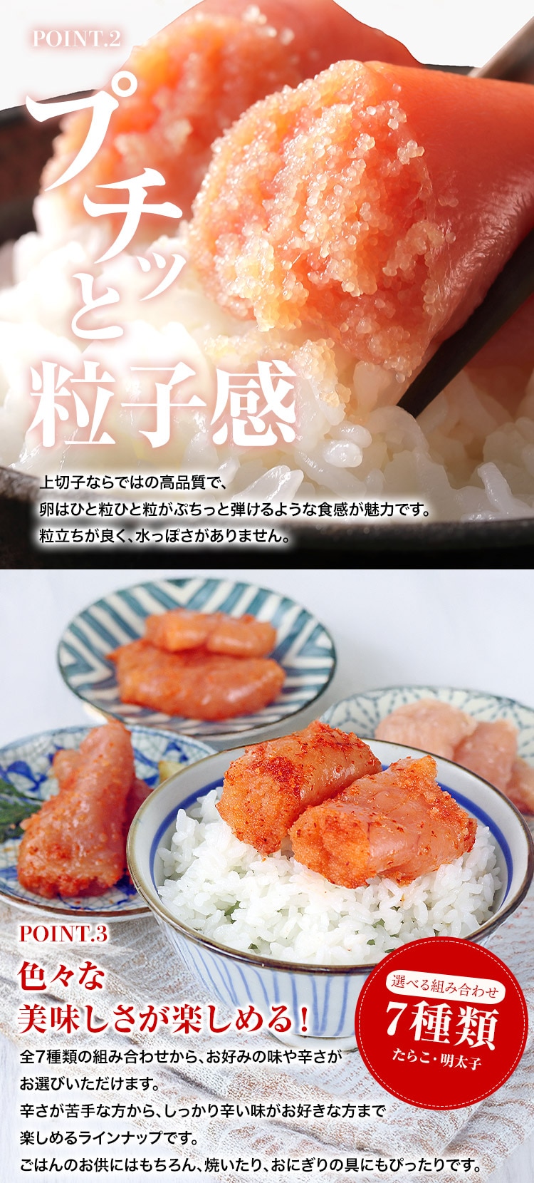 また、着色料を使用しておらず、明太子本来の見た目・味をお楽しみいただけます!