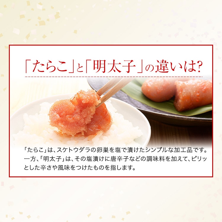 また、着色料を使用しておらず、明太子本来の見た目・味をお楽しみいただけます!