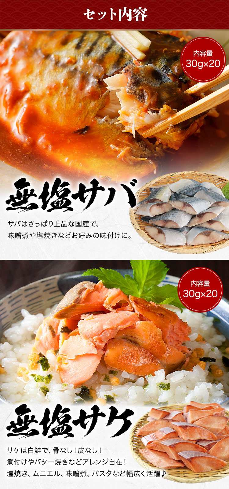 ◯鯖の無塩&鮭の無塩をセットで