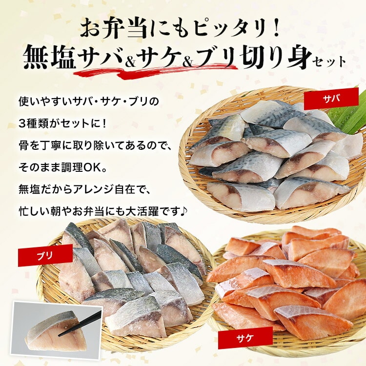 使いやすいサバ・サケ・ブリの3種類がセットに!