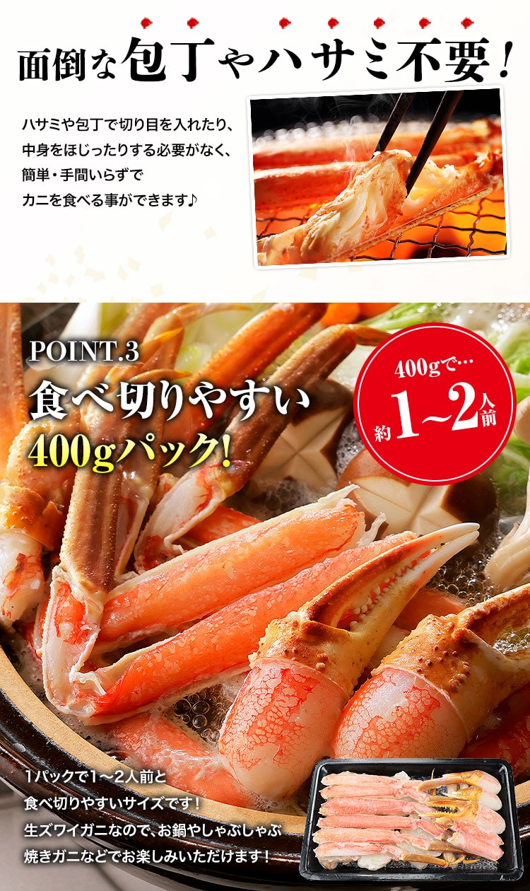 生ズワイガニなので、お鍋やしゃぶしゃぶ焼きガニなどでお楽しみいただけます!
