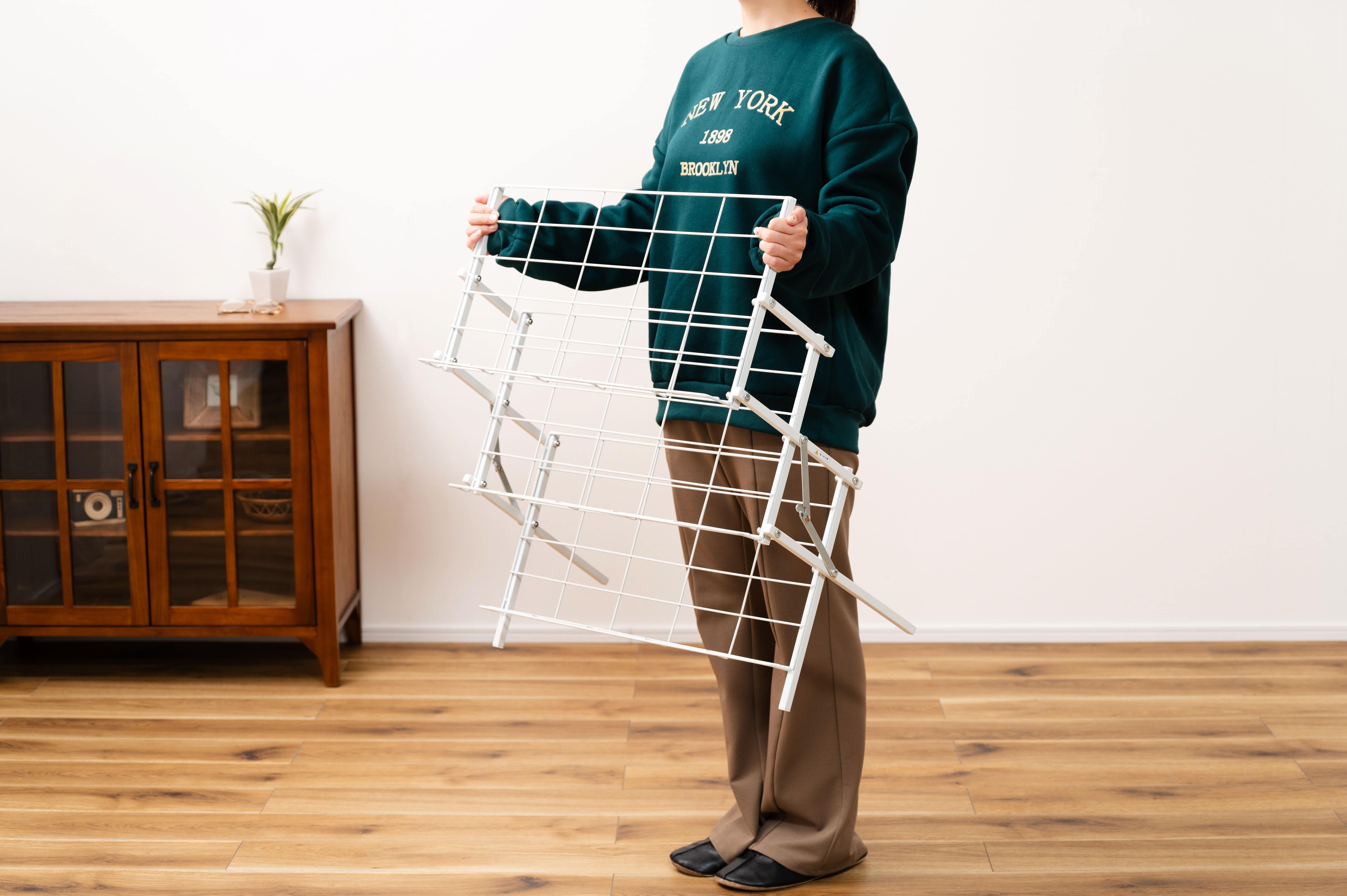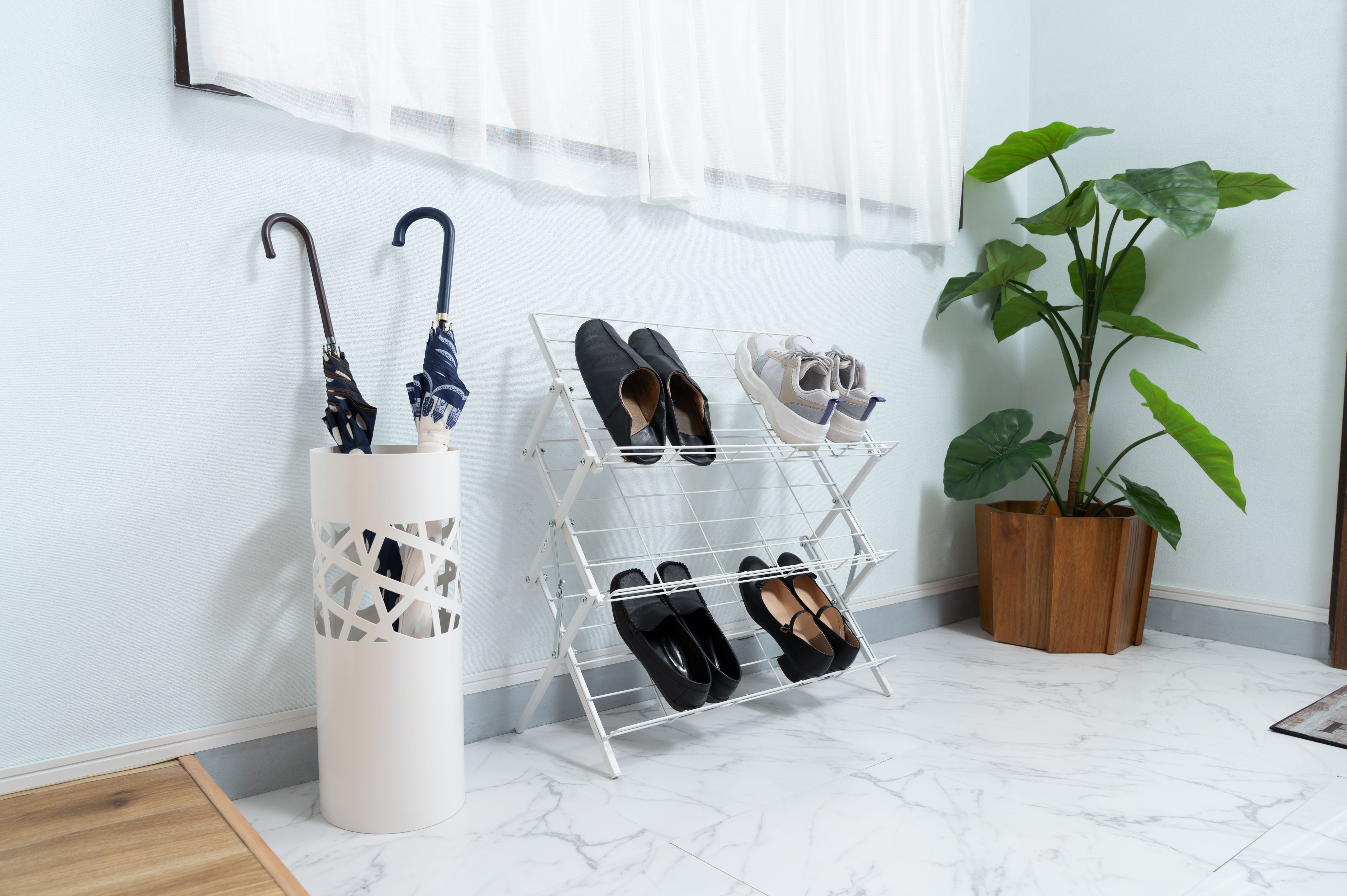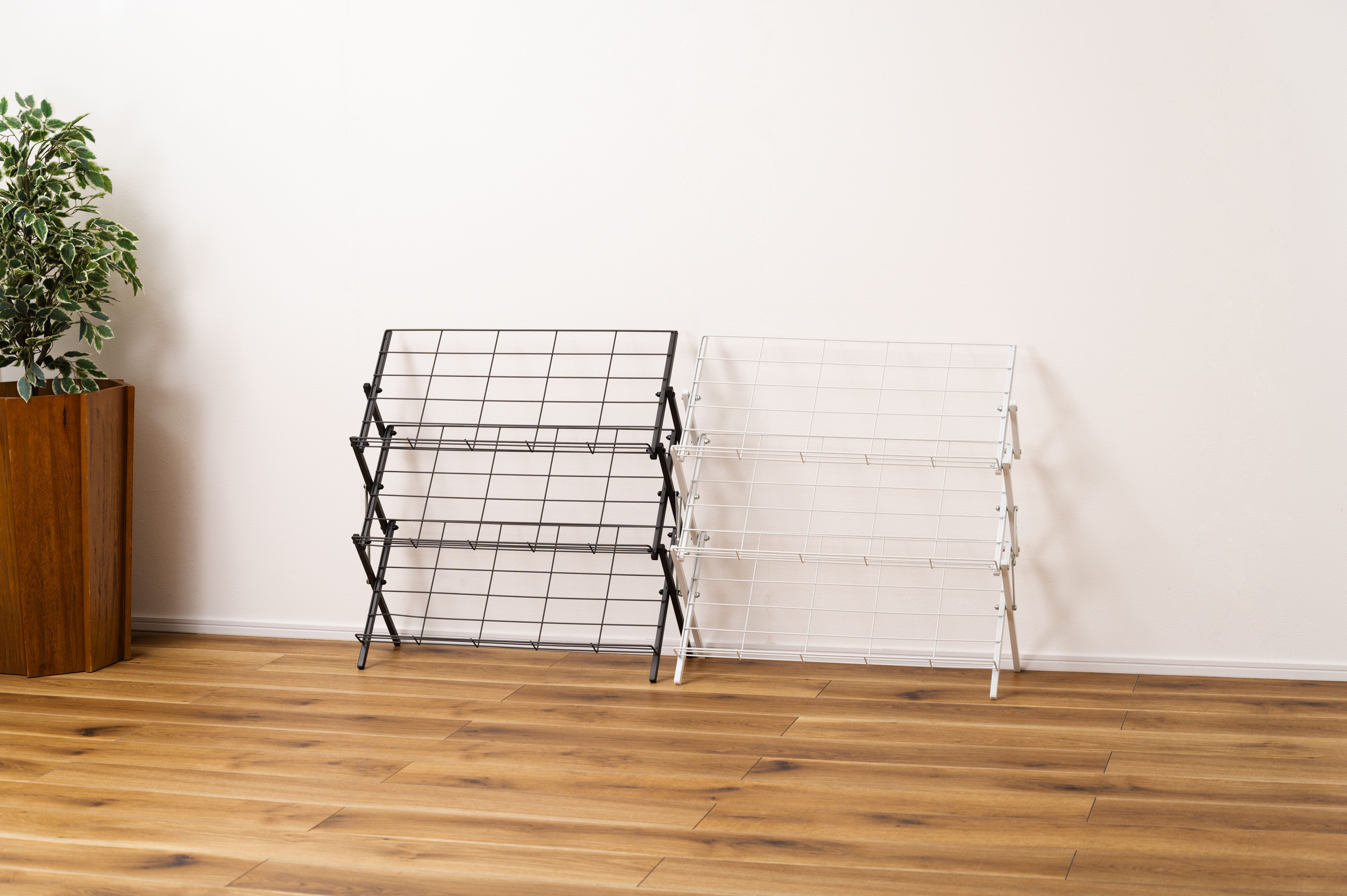 ●スチール素材で通気性も良く、見た目もサイズもスッキリとしたデザインのシューズラック。
