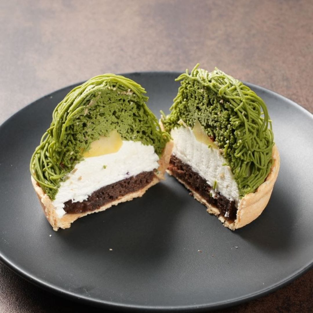 栗ペースト(国内製造)、ブラウニー(砂糖、マーガリン、全卵、小麦粉、カカオマス、卵白加工品、水あめ、粉あめ、植物油脂、くるみ、ココアパウダー、油脂加工品)タルト(小麦粉、砂糖、鶏卵)ムースの素(砂糖、粉末油脂、クリーミングパウダー、ゼラチン)、ブルーベリージャム、ローストクルミ、クッキークランチ(小麦粉、砂糖、ショートニング、異性化液糖、ココアパウダー、加糖脱脂練乳、食塩)栗の甘露煮、 牛乳、緑茶、粉末抹茶、粉末ほうじ茶、粉末紅茶、粉糖/酸味料ゲル化剤(ペクチン)、クエン酸ナトリウム、香料、膨張剤、着色料(カロチン、クチナシ、野菜色素)、増粘剤(加工デンプン、増粘多糖類)、乳化剤,(一部に小麦、卵、乳成分、くるみ、大豆、ゼラチンを含む)