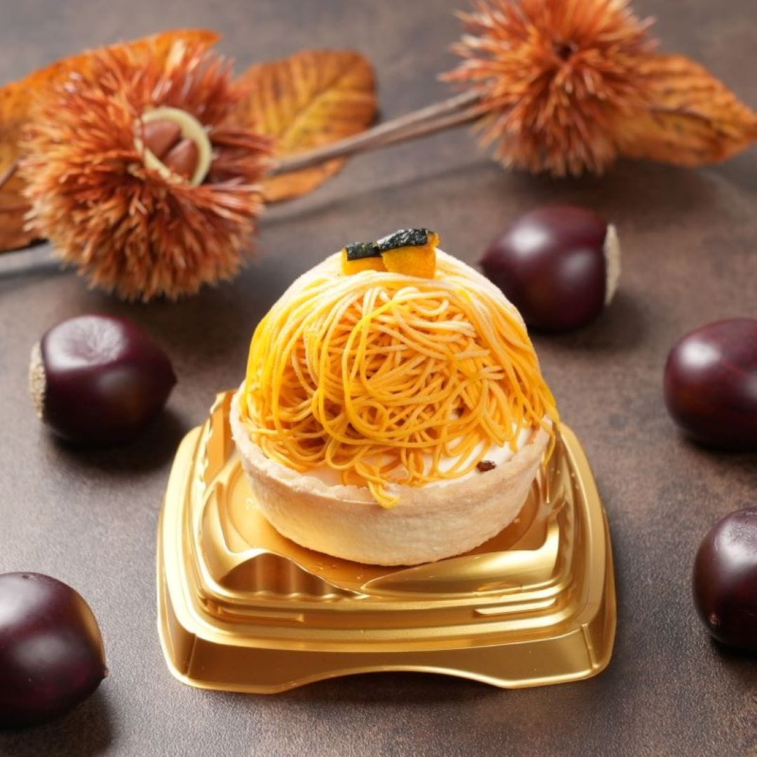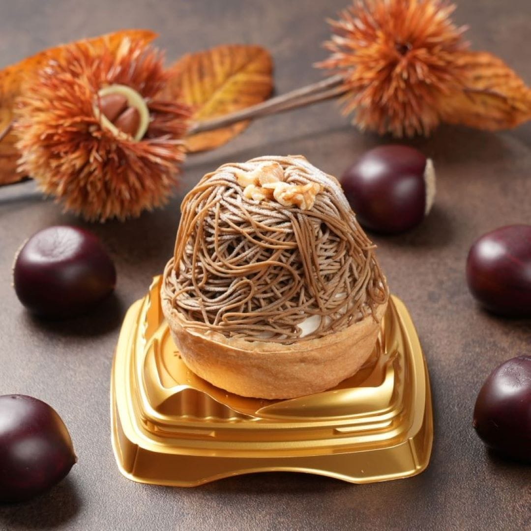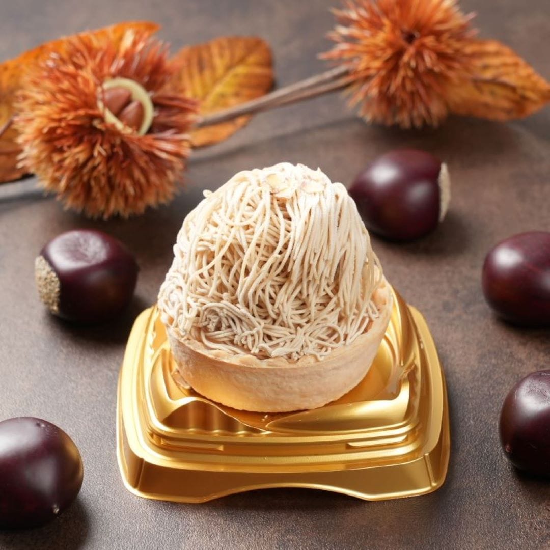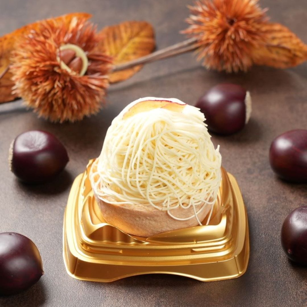 栗ペースト(国内製造)、焼芋ペースト(国内製造)、かぼちゃペースト(国内製造)、ブラウニー(砂糖、マーガリン、全卵、小麦粉、カカオマス、卵白加工品、水あめ、粉あめ、植物油脂、くるみ、ココアパウダー、油脂加工品)タルト(小麦粉、砂糖、鶏卵)ムースの素(砂糖、粉末油脂、クリーミングパウダー、ゼラチン)、さつまいもチップス、かぼちゃチップス、ブルーベリージャム、クッキークランチ(小麦粉、砂糖、ショートニング、異性化液糖、ココアパウダー、加糖脱脂練乳、食塩)栗の甘露煮、カスタードクリーム、牛乳/酸味料、ゲル化剤(ペクチン)、クエン酸ナトリウム、香料、膨張剤、着色料(カロチン、クチナシ、野菜色素)、増粘剤(加工デンプン、増粘多糖類)、乳化剤、グリシン、リン酸塩(Na),(一部に小麦、卵、乳成分、くるみ、大豆、ゼラチンを含む)