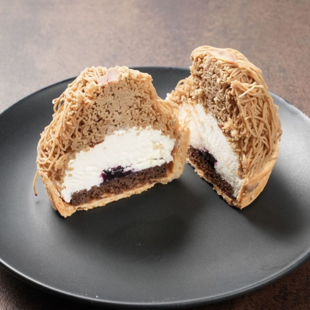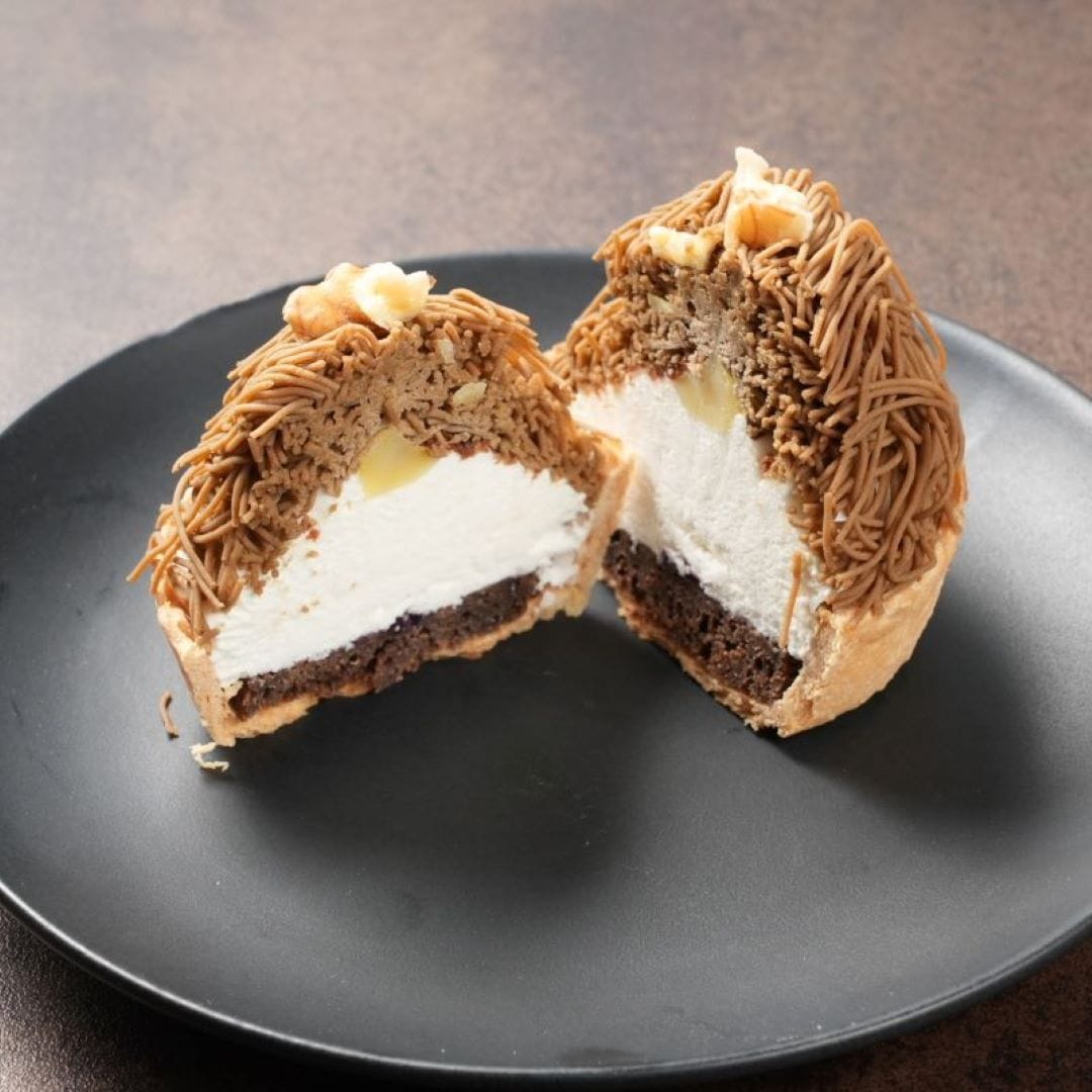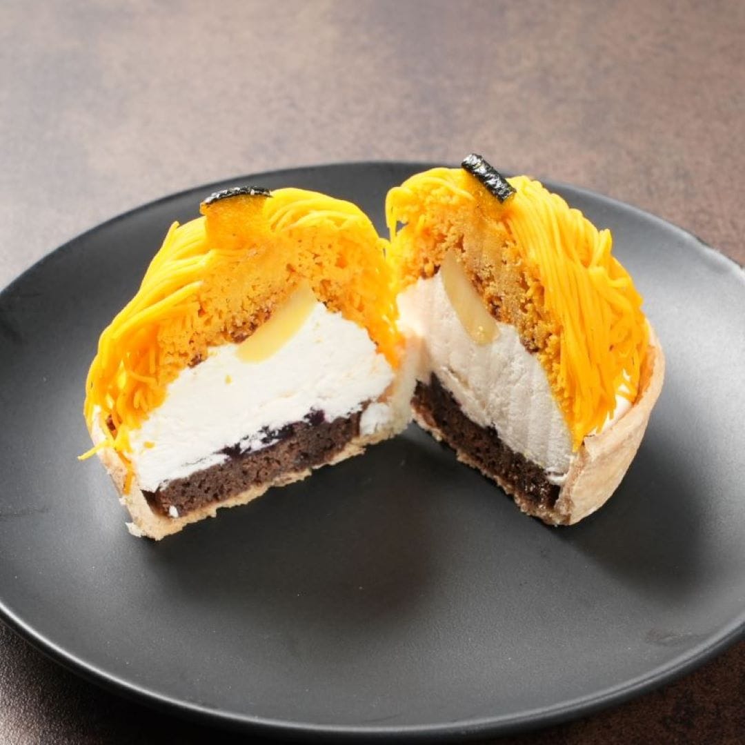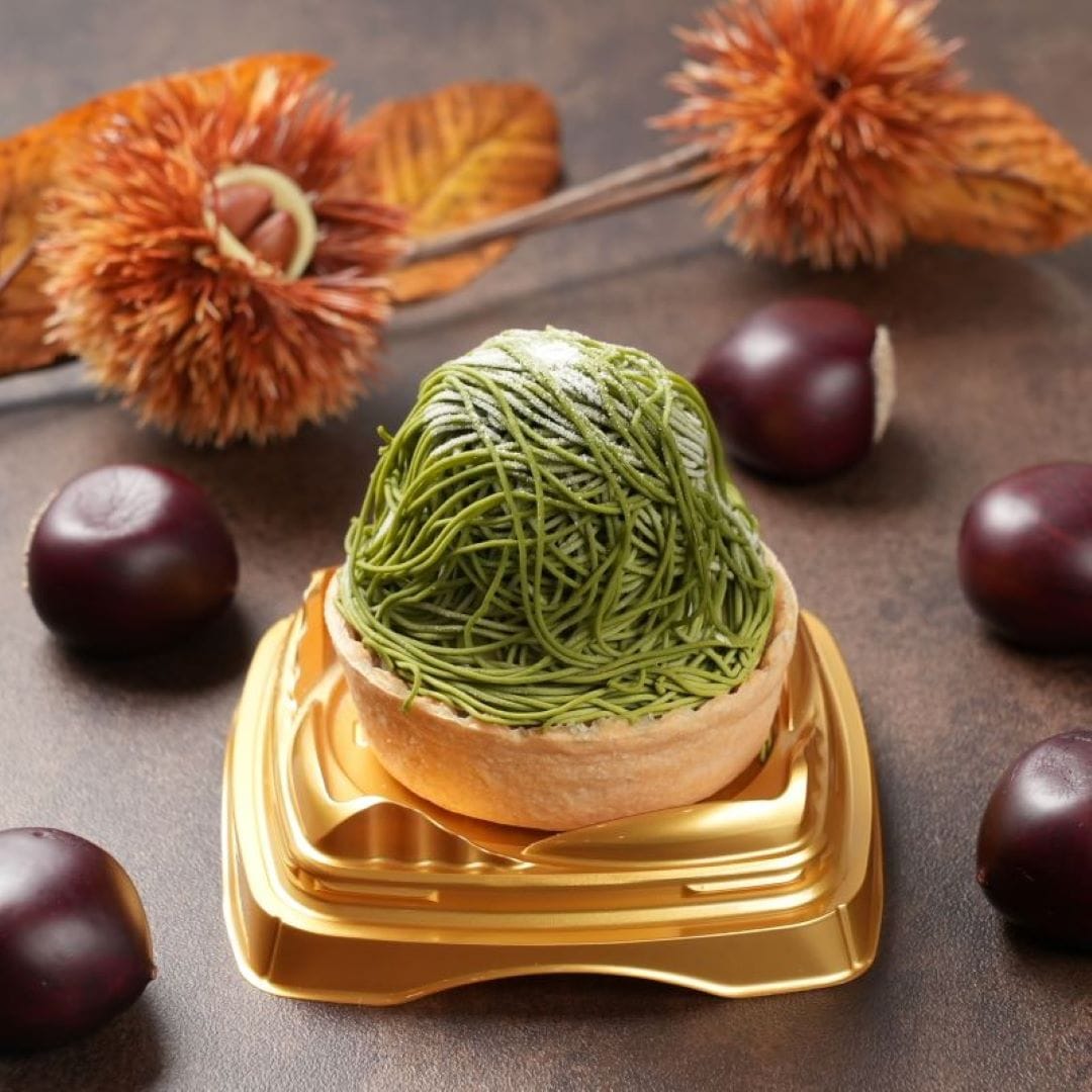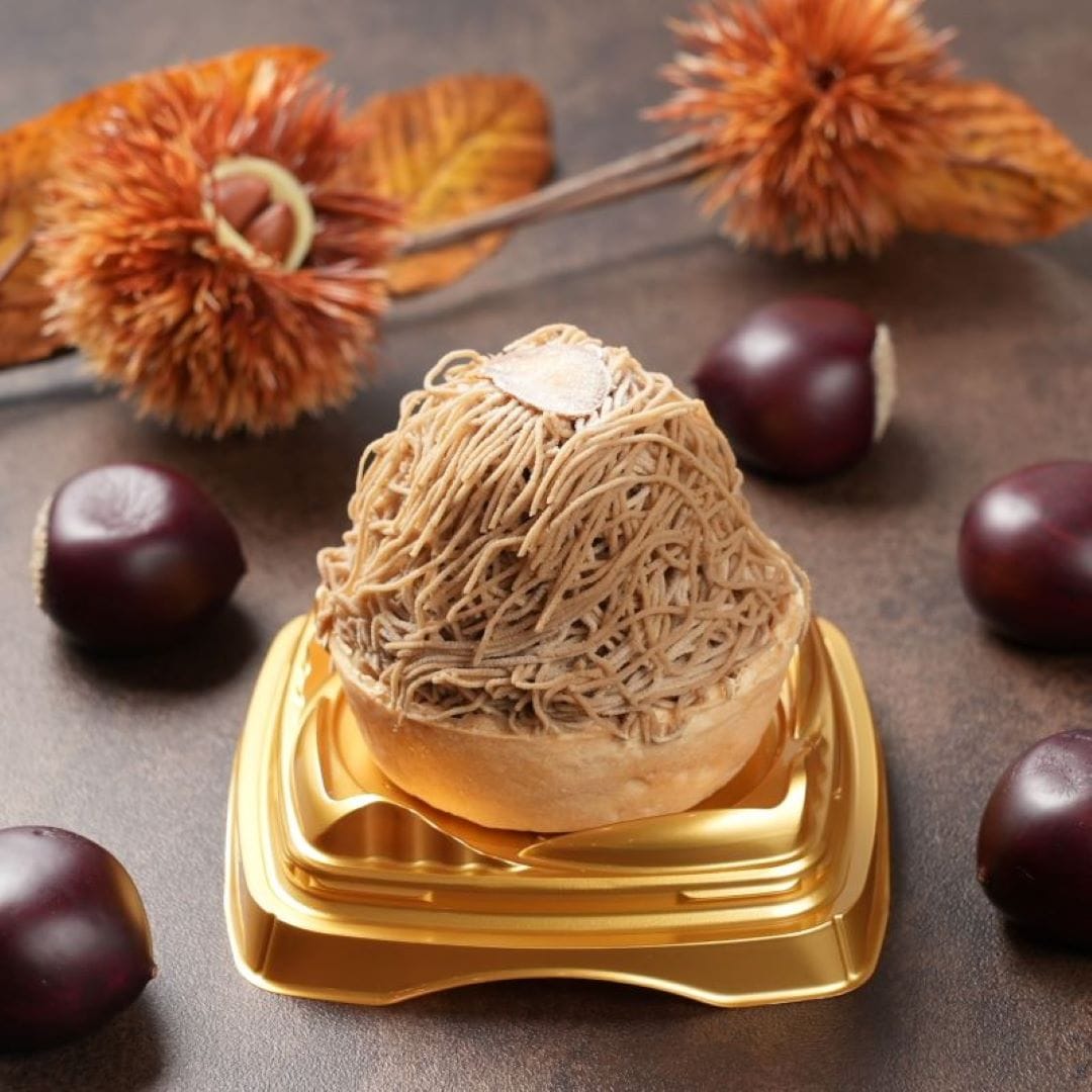 栗ペースト(国内製造)、焼芋ペースト(国内製造)、かぼちゃペースト(国内製造)、ブラウニー(砂糖、マーガリン、全卵、小麦粉、カカオマス、卵白加工品、水あめ、粉あめ、植物油脂、くるみ、ココアパウダー、油脂加工品)タルト(小麦粉、砂糖、鶏卵)ムースの素(砂糖、粉末油脂、クリーミングパウダー、ゼラチン)、さつまいもチップス、かぼちゃチップス、ブルーベリージャム、クッキークランチ(小麦粉、砂糖、ショートニング、異性化液糖、ココアパウダー、加糖脱脂練乳、食塩)栗の甘露煮、カスタードクリーム、牛乳/酸味料、ゲル化剤(ペクチン)、クエン酸ナトリウム、香料、膨張剤、着色料(カロチン、クチナシ、野菜色素)、増粘剤(加工デンプン、増粘多糖類)、乳化剤、グリシン、リン酸塩(Na),(一部に小麦、卵、乳成分、くるみ、大豆、ゼラチンを含む)