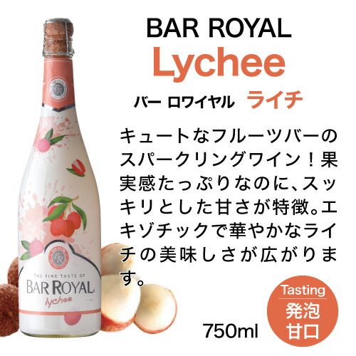 ライチの果実感が弾けるフルーツスパークリング キュートなフルーツフレーバーのスパークリングワイン! 果実感たっぷりなのにスッキリした甘さが特徴!口の中で泡が弾けて、みずみずしい味わい。