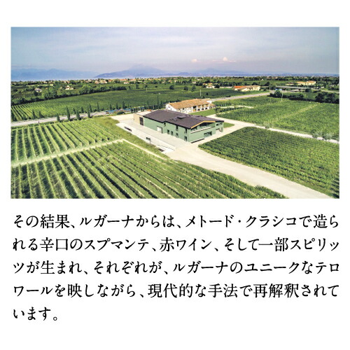 レモンタルトのような爽やかクリーミースパークリング イタリア北部ロンバルディア州とヴェネト州にまたがるイタリア最大の湖ガルダ湖の南部に広がるワイン産地ルガーナ。トゥルビアーナ(トレッビアーノ・ディ・ルガーナ)と呼ばれるルガーナ独自の個性を持ったブドウからは、酸とミネラルの強い、旨味のあるワインが生まれます。 繊細な白い花の香りとフレッシュでクリアなシトラスやトロピカルフルーツの香り。最低24ヶ月瓶内二次発酵を行い、レモンタルトのようなシトラスの爽やかな香りとクリーミーさを両立させた味わいです。