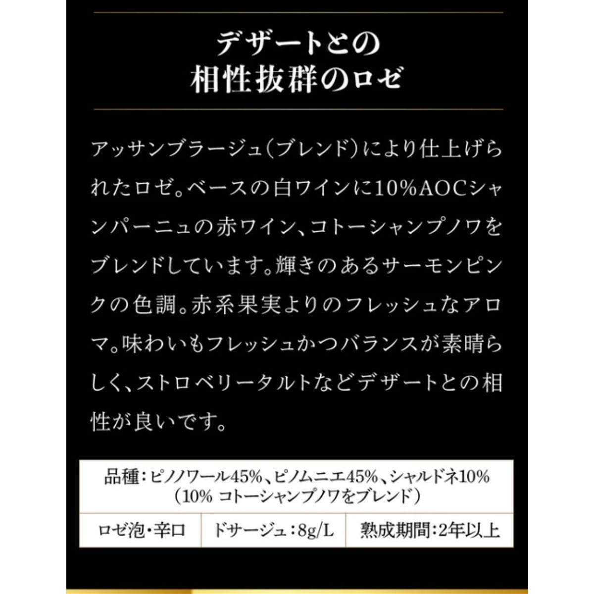 デザートとの相性抜群のロゼ アッサンブラージュ(ブレンド)により仕上げられたロゼ。 ベースの白ワインに10%AOCシャンパーニュの赤ワイン、コトーシャンプノワをブレンドしています。 輝きのあるサーモンピンクの色調。 赤系果実よりのフレッシュなアロマ。 味わいもフレッシュかつバランスが素晴らしく、ストロベリータルトなどデザートとの相性が良いです。 インフィニット エイトは、デザイナーのフランク・ルルーと醸造家のニコラ・ル・ティクスランによって設立され、長期熟成にこだわったシャンパーニュを生産するメゾンです。