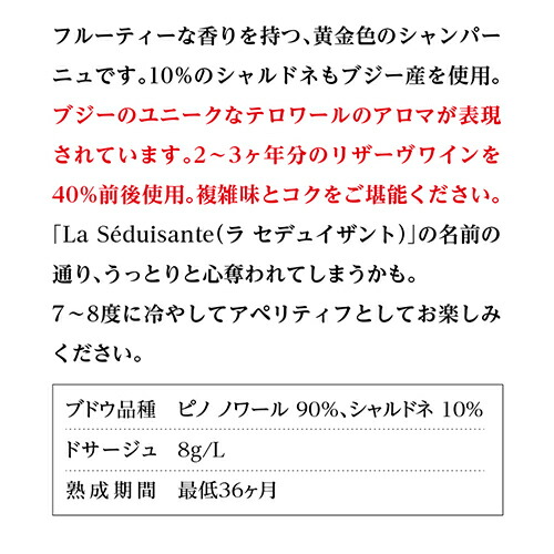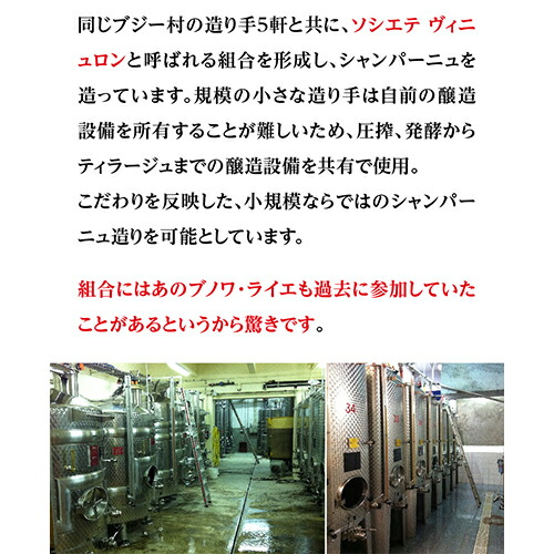 最高のテロワールを最高の状態で表現 手摘みで収穫。全房のまま圧搾。温度制御機能付きステンレスタンクで16度の低温でアルコール発酵、タイル貼りタンクで熟成。2~3ヶ年分のヴァン・ド・レセルヴとアッサンブラージュ。マロラクティック発酵あり。