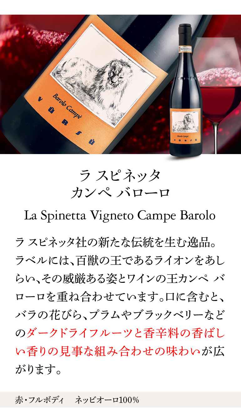 ![【10%OFF】赤ワイン ラ スピネッタ カンペ バローロ [2018] 750ml 浜運【送料無料】](https://shop.r10s.jp/cellar/cabinet/rakuten48/spinetta-thumb_06.jpg)