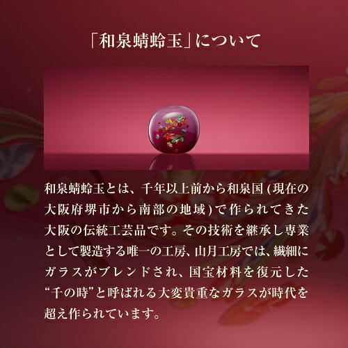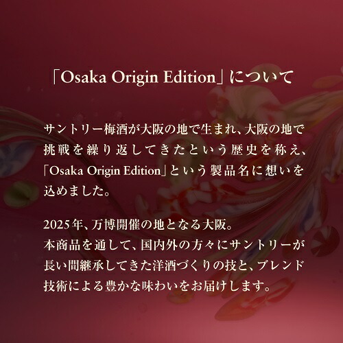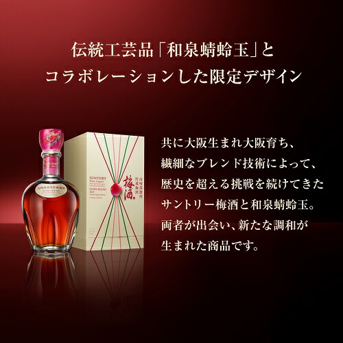 ウイスキー古樽を使用し、山崎蒸溜所にて貯蔵したブランデー梅酒を贅沢に使用。 その味わいと香りが引き立つよう、梅酒樽で長期間熟成したモルトウイスキーやその他貴重なブランデー古酒をブレンド。 ■つくりのこだわり ◆山崎蒸溜所で樽熟成したブランデー梅酒の柔らかく華やかな香味を最大限感じられる設計 ◆骨格となる梅酒の味わいを更に引き立たせるために、梅酒を貯蔵した樽で長期熟成した、モルトウイスキーをブレンド ◆超長期熟成ブランデー古酒配合により、華やかで奥行きのある、カドの無いまろやかな深い味わい ■デザインの特徴 大阪生まれ大阪育ちの山崎蒸溜所貯蔵梅酒に、同じく大阪の地で育まれた伝統工芸「和泉蜻蛉玉」のデザインを表現し、 大阪での挑戦の歴史を重ね合わせたデザイン。 今回の商品の為に作成したオリジナルの和泉蜻蛉玉の模様をキャップシールと首貼りにデザイン。 大阪府知事指定 伝統工芸品 和泉蜻蛉玉とは? 大阪府知事指定伝統工芸品であり、山月工房の登録商標。 和泉の国(大阪府堺市周辺)で奈良時代以前より製作されてきた。 「和泉蜻蛉玉」に使用しているガラス材料は、国宝復元材料を再生した”千の時”と呼ばれる大変貴重なガラスをはじめ、 伝統に特化したガラスを使用しています。 和泉蜻蛉玉を作成できるのは、たった一人の伝統工芸士であるという非常に希少価値の高い伝統工芸品。【 品名 】本格梅酒 【 容量 】700ml【アルコール分】16% 【製造者】サントリー