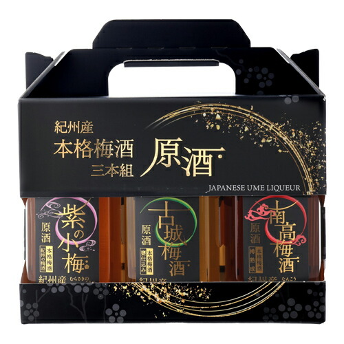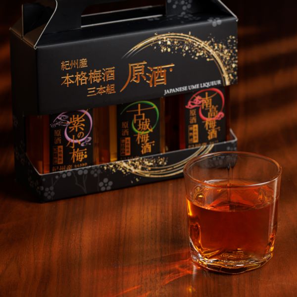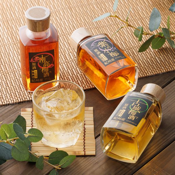 種類が違う原酒梅酒の飲みくらべ。甘さ控えめで程よい酸味と苦味がありコクとキレが効いたパンチあふれる「古城梅酒」、香り豊かで鮮やかな赤紫色が特徴のすっきりした味わい「紫の小梅」、完熟梅のフルーティーな香りとオーク樽の熟成香が合わさった深いコクと豊かな香りの「南高梅酒」。それぞれが魅力的で梅の味わいを堪能できる、お得に欲張れる3本組セットです。 ■商品名 紀州産本格梅酒原酒200ml×3本組 ■内容量 200ml×3本 ■アルコール度数 20度